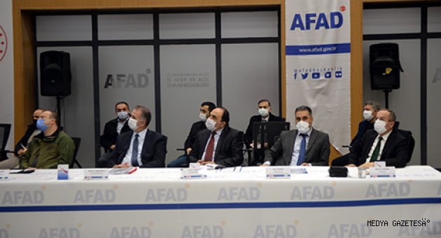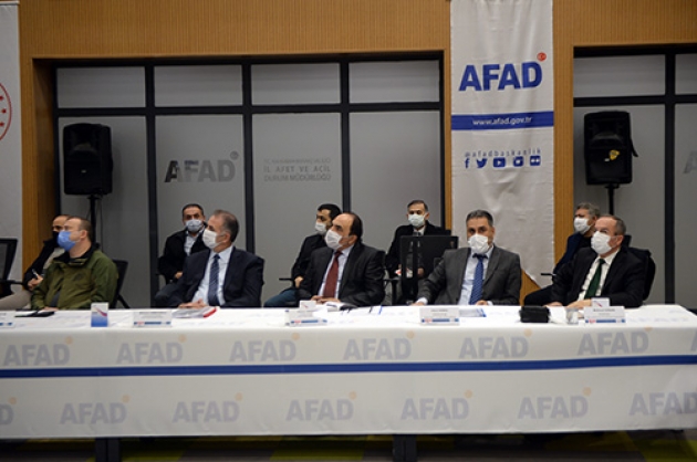 Valilik ile Afet ve Acil Durum Yönetimi Başkanlığınca (AFAD) kenteki AFAD Kampüsü'nde düzenlenen toplantıda, kentte meydana gelmesi muhtemel deprem, sel, heyelan ve yangın gibi afetlerde yapılması ve alınması gereken tedbirler ele alındı.Alanında uzman kişiler tarafından arama, kurtarma, barınma, hasar tespiti, enkaz çalışmaları, depo yönetimi ve dağıtımı, teknik destek, ikmal, ulaşım ve altyapı çalışmaları konularında sunum yapıldı.AFAD Başkan Yardımcısı İsmail Palakoğlu, Türkiye'nin jeolojik ve jeofizik konumu gereği deprem başta olmak üzere çok ciddi afetlerle karşı karşıya olduğunu belirtti.Türkiye'nin afet riski bakımından riskli bir bölgede olduğunu anlatan Palakoğlu, "Bu açıdan AFAD olarak 81 ildeki il müdürlüklerimizle birlikte afetlere hazırlık, afetler esnasında müdahale sonrasında iyileştirme faaliyetleri çerçevesinde yoğun çalışmalarımız devam ediyor. Kahramanmaraş ilimize bugün gelmemizdeki amaç Türkiye Afet Müdahale Planı kapsamında tüm çalışma gruplarıyla planlar üzerinde detaylı çalışma ve toplantılar yapmak." diye konuştu.Palakoğlu, İstanbul, Bursa, İzmir Bingöl, Hatay ve Kahramanmaraş başta deprem olmak üzere afetselliği yüksek olan iller olduğunu hatırlattı.İçişleri Bakanı Süleyman Soylu'nun talimatıyla afet riski yüksek olan Kahramanmaraş'a geldiklerini ve 26 çalışma grubuyla tek tek bir senaryo üzerinde çalışmalar yaptıklarını vurgulayan Palakoğlu, şunları kaydetti:"Daha öncesinde temmuz ve ağustos aylarında 3 kez gelmiştik. İnşallah bu haftaki yapacak olduğumuz çalışmayla da 26 çalışma grubumuzun tamamıyla bütün planlar üzerinden tek tek geçmiş olacağız. Eksiklerimizi tespit etmiş olacağız. Türkiye Afet Müdahale Planı kapsamında bugüne kadar Kahramanmaraş'ta 240 toplantı gerçekleştirdik. İnşallah bu yılın sonunda tamamlanmış olacak. İlimizde olası bir afet oluştuğunda buna nasıl müdahale edeceğiz. Çalışma gruplarımız, arama, kurtarma, beslenme, barınma, trafik güvenliği ve hasar tespitinden sağlığa kadar ne tür çalışmalar yaptılar bütün bunları görmüş olacağız."Palakoğlu, Kahramanmaraş'ın AFAD tarafından hazırlanan İl Afet Risk Azaltma Planı çerçevesinde pilot il olarak belirlendiğini anımsatarak, bu doğrultuda kentteki her kuruluşun ayrı ayrı çalışmalar yaptığını ve ilk değerlendirme toplantısının ise 30 Aralık'ta gerçekleştirileceğini söyledi.İsmail Palakoğlu, "Afetler olmadan önce risklerin belirlenmesi ve bununla alakalı hazırlıkların yapılması, daha da önemlisi vatandaşlarımıza afet bilinçlerinin verilmesinin bir davranış değişikliğine dönüşmesi gerekiyor. Bununla alakalı çalışmalarımız yoğun bir şekilde devam ediyor." ifadelerini kullandı.