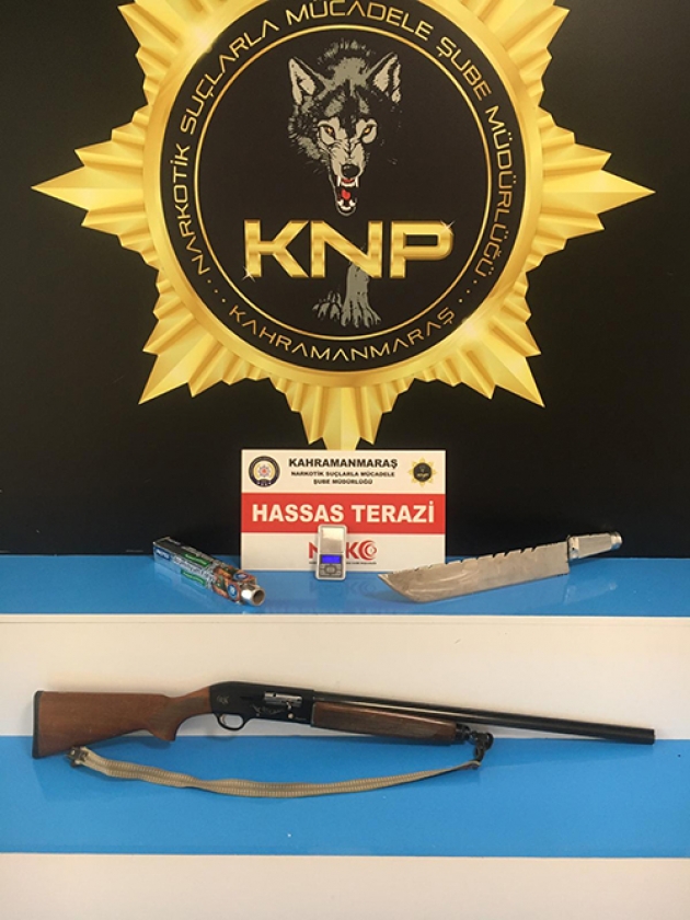Şüphelilerin ikamet ve araçlarında yapılan aramalarda, farklı miktarlarda uyuşturucu, 1 hassas terazi, 1 av tüfeği ile bıçak ele geçirildi.
