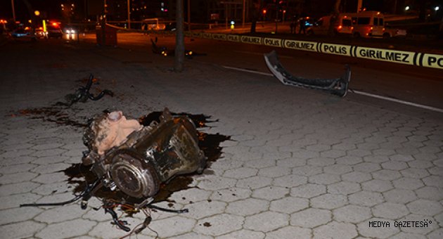 - Kazada çarpışmanın etkisiyle otomobillerden biri takla atarak 50 metre sürüklendi, diğer aracın motoru ise yerinden fırlayarak etrafa saçıldı