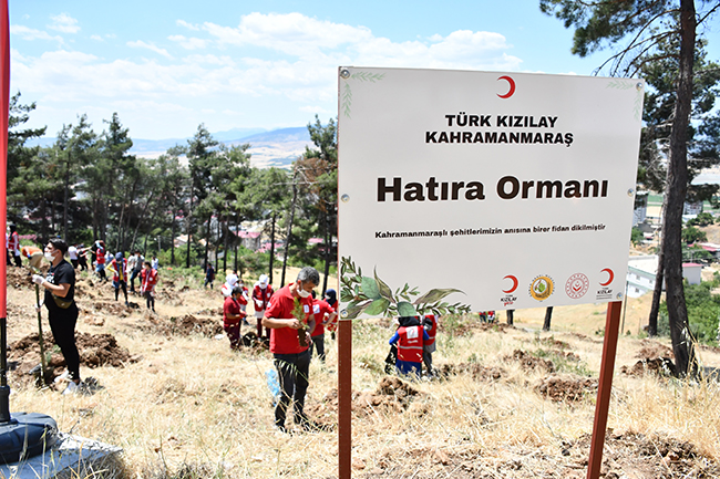 Türk Kızılay ve Aile, Çalışma ve Sosyal Hizmetler İl Müdürlüğünce yapılan proje kapsamında, Kahramanmaraşlı 452 şehidin aziz hatıralarının yaşatılması amacıyla hatıra ormanı oluşturulması kararlaştırıldı.Kazmabağları mevkisinde geçen yıl çıkan orman yangınında zarar gören ormanlık fidan dikim sahasında bir araya gelen Türk Kızılay Kahramanmaraş gönüllüleri ile çocuk evlerinde koruma ve bakım altındaki çocuklar, yeni tip koronavirüs (Kovid-19) tedbirleri kapsamında 452 şehidin anısına temin edilen çam ve sedir fidanlarını toprakla buluşturdu.