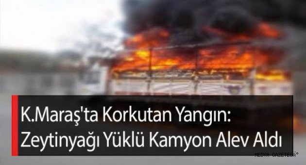 Kahramanmaraş'ın merkez Onikişubat ilçesinde zeytinyağı yüklü kamyon yandı.