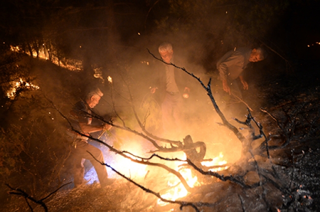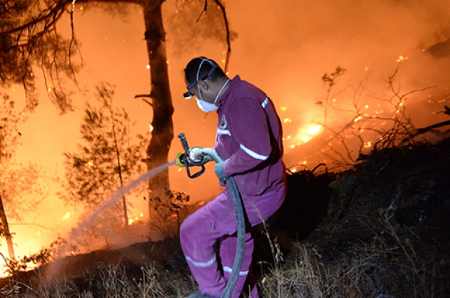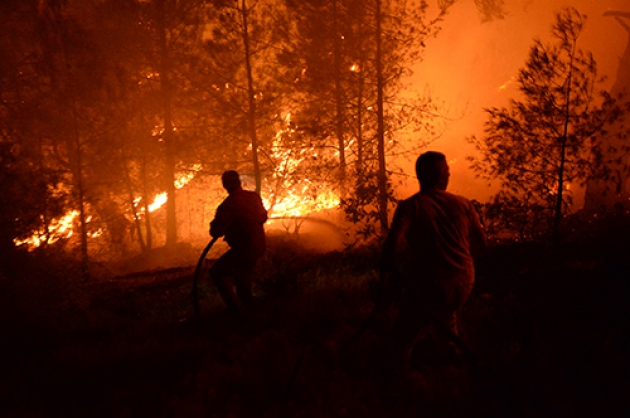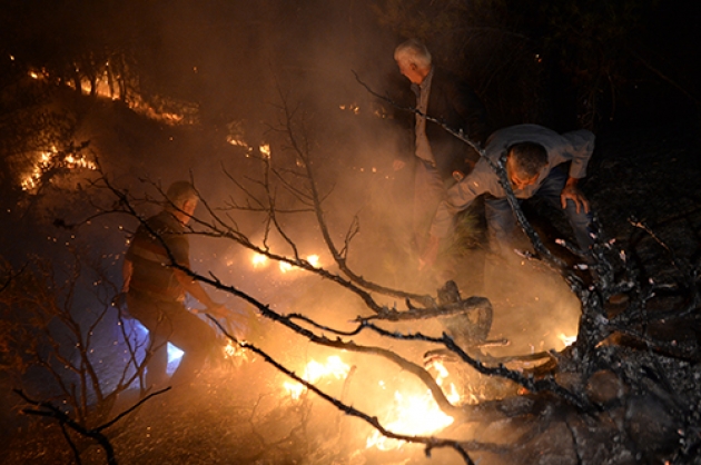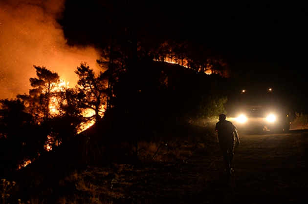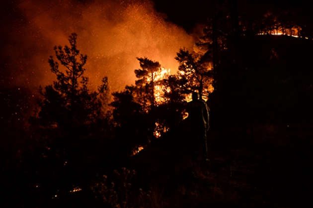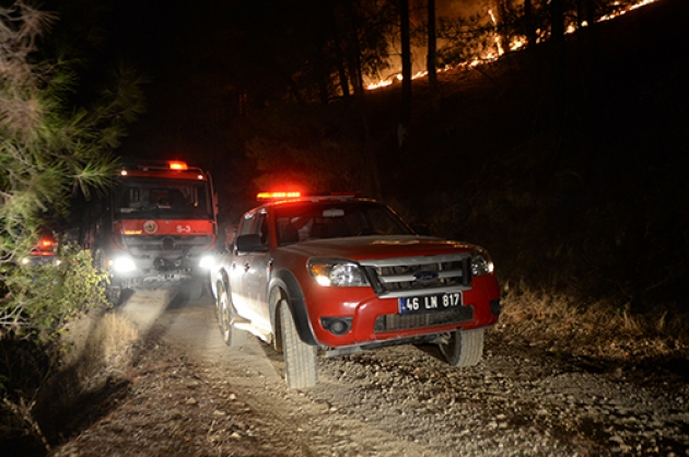 İlçeye bağlı Ayşe Pınarı Musalar mevkiinde kırsalda akşam saatlerinde çıkan ve rüzgarın da etkisiyle kısa sürede büyüyen yangına Kahramanmaraş Orman Bölge Müdürlüğü ekipleri müdahale etti.Konya, Mersin, Malatya, Adıyaman ve Adana'dan takviye gönderilen ekiplerinde destek verdiği yangın söndürme çalışmalarına vatandaşlar da yardım ediyor.Onikişubat Orman İşletme Şefi Mustafa Kavak, yangını söndürmek için ekiplerin cansiperane çalıştığını söyledi.Çevre illerden bölgeye arazözler gönderildiğini, 35 hektarlık alanda yangının devam ettiğini belirten Kavak, şunları kaydetti:"Kuzey cephesini tamamen kontrol altına aldık. Doğu cephesini kontrol altına almaya çalışıyoruz. Batı cephesini kısmen kontrol altına almaya çalıştık. Güney cephesinde de arkadaşlarımız konuşlandılar. O bölgede yerleşim yerleri var. Yangının yerleşim yerlerine ulaşmaması için elimizden gelen gayreti sarf ediyoruz. Sabahın ilk ışıklarıyla birlikte hava araçlarımızda yangına müdahale edecekler. İnşallah kontrol altına alacağız diye düşünüyoruz."Vatandaşlardan Ramazan Purtaş da haber alır almaz yangının yerleşim yerlerine sıçramasını engellemek için kent merkezinden yardıma geldiklerini söyledi.