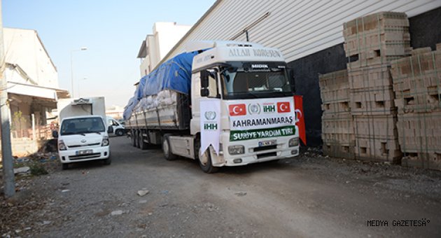 Kahramanmaraş'ta, İnsan Hak ve Hürriyetleri (İHH) İnsani Yardım Vakfınca temin edilen 6 tır insani yardım malzemesi Suriye'ye gönderildi.