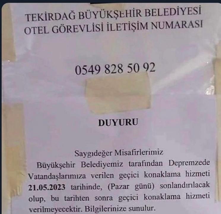 Tekirdağ'da Kahramanmaraş merkezli depremden etkilenen depremzedelerin, seçimlerin ardından bulundukları otelden çıkarılma süreci gündemde tartışmalara neden oldu. Depremzedeler, depremin ardından Tekirdağ Büyükşehir Belediyesi tarafından sağlanan konaklama hizmetiyle geçici olarak bir otele yerleştirilmişti. 14 Mayıs’ta gerçekleşen Cumhurbaşkanlığı ve 28. Dönem milletvekilliği seçimlerinin ardından Tekirdağ Büyükşehir Belediyesi depremzede vatandaşları konakladıkları otellerden çıkarmak için duyuru bildirisi yayımladı. Kahveci ise konuyla ilgili sosyal medya hesabından çağrıda bulundu. Kahveci, belediyenin depremzede vatandaşları otelden çıkarma kararına tepki göstererek, "Yazıklar olsun sizin siyasetinize, sizin insanlığınıza!" dedi.“YAZIKLAR OLSUN!”Konuyla ilgili sosyal medyasında çağrıda bulunan önceki dönem MHP Kahramanmaraş İl Başkan Vekili Ahmet Kahveci, "CHP’li Tekirdağ Büyükşehir Belediyesinin Depremzede vatandaşlarımızın deprem bölgesindeki siyasi tercihlerinden dolayı Tekirdağ’da konakladıkları otellerden çıkarılma ve geri gönderilme kararına karşılık olarak Kahramanmaraş Büyükşehir Belediyesi olarak bu vatandaşlarımıza sahip çıkın ve kucak açın. Organizasyonu siz sağlayın bizlerde gerekirse vatandaşlarımızı sağlam evlerimizde misafir edelim benim kapımda gönlümde deprem mağduru vatandaşlarımıza açıktır, eminim ki benim gibi düşünen birçok hemşehrimiz çıkacaktır. Başımızın üzerinde yerleri vardır. Haydi seferber olalım vatandaşlarımızı bu zihniyete mecbur bırakmayalım! Kendilerine oy vermedi diye deprem mağduru vatandaşlarımıza bugün muhalefet iken bunu yapan bu kör zihniyet yetki eline geçerse(!) neler yapmaz ki! Yazıklar olsun sizin siyasetinize sizin insanlığınıza!!!" ifadelerini kullandı.