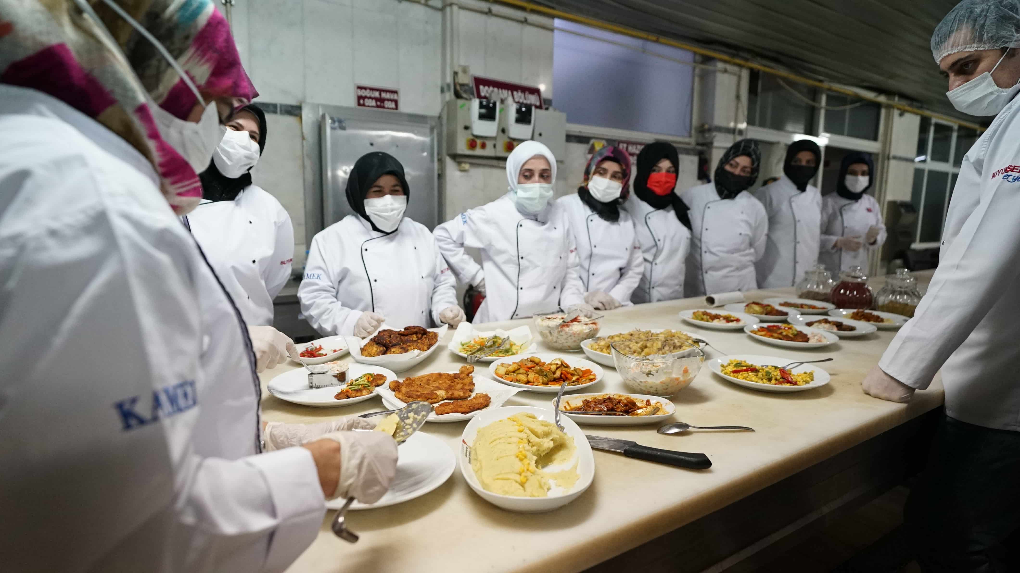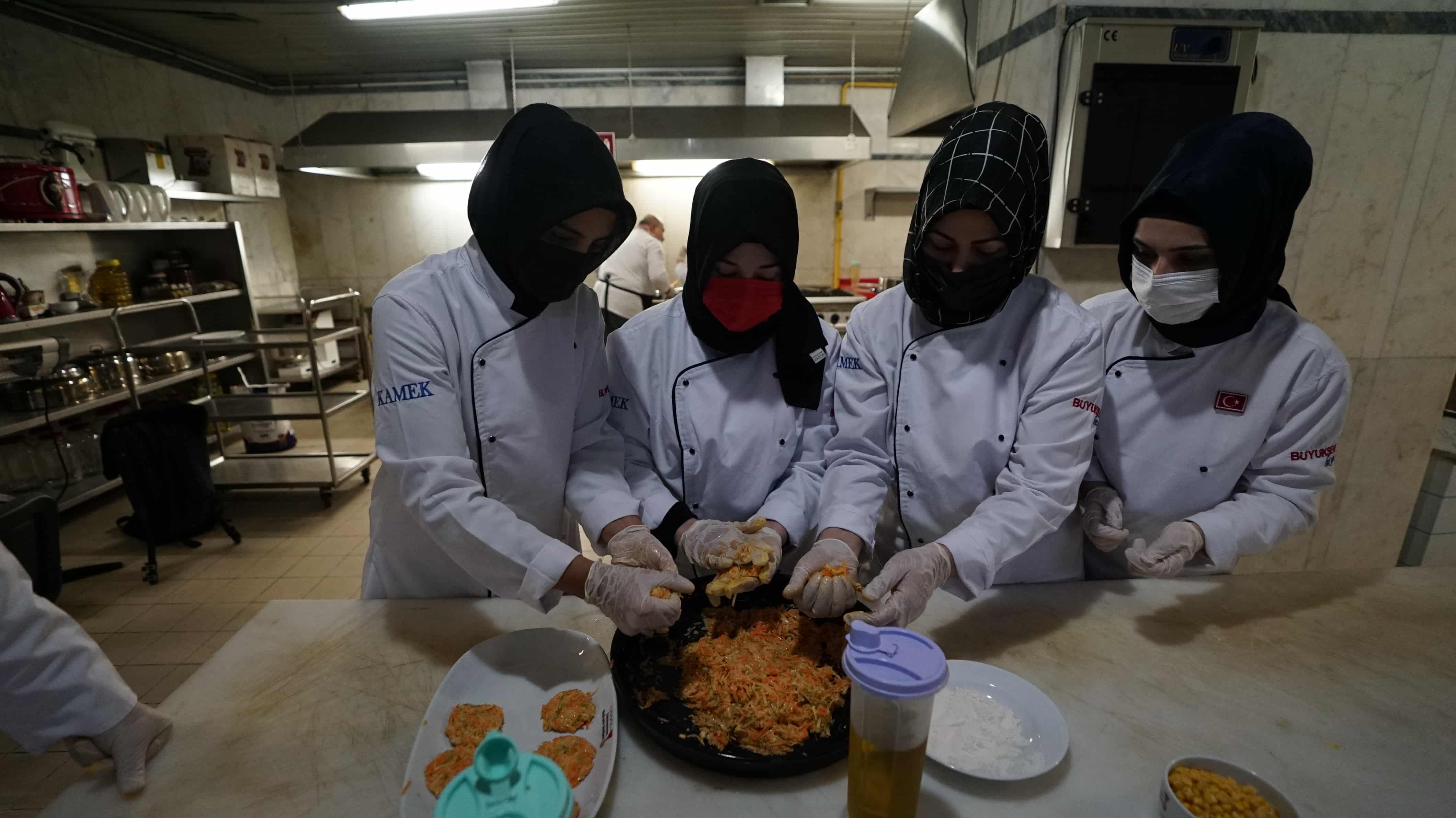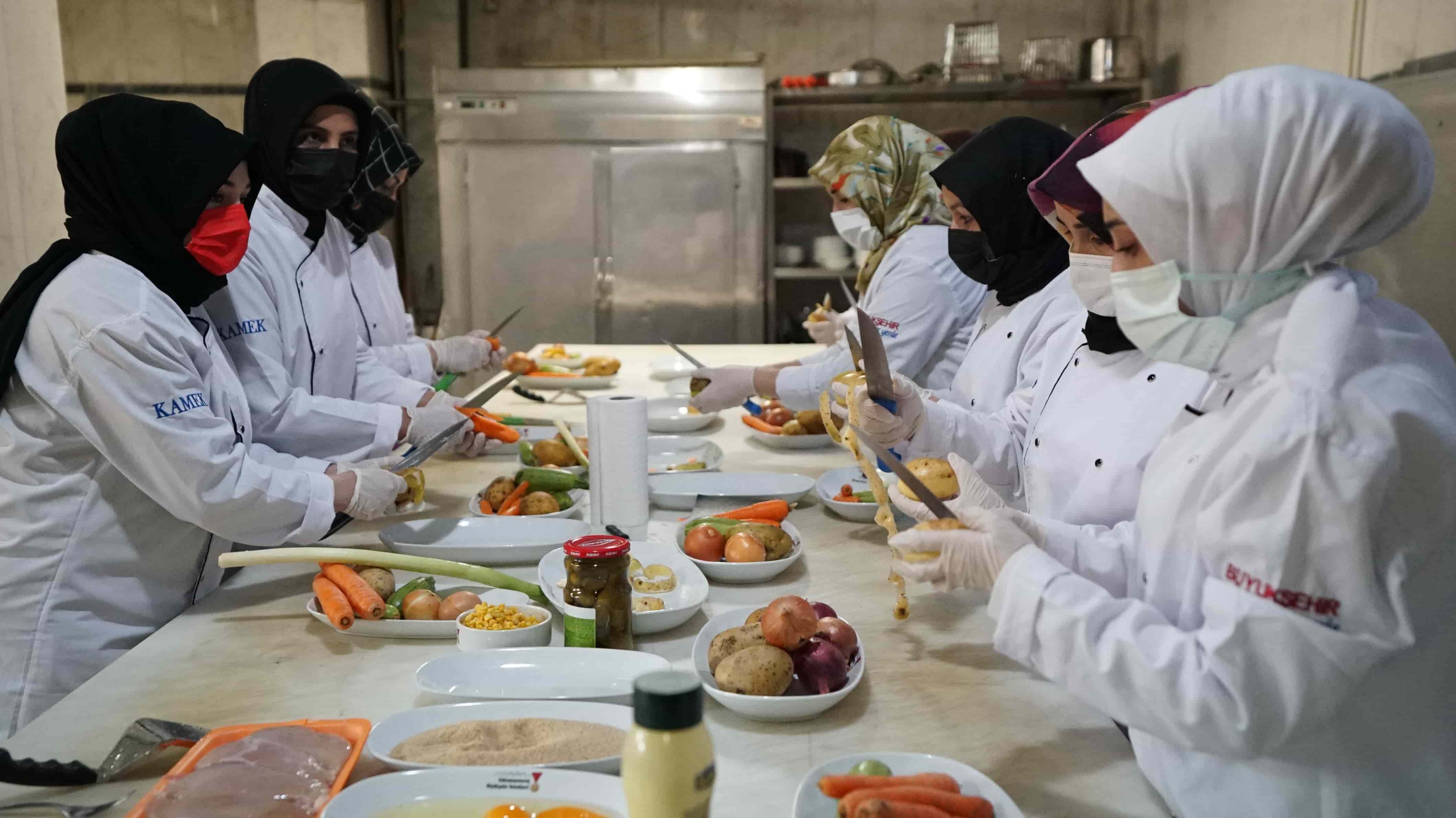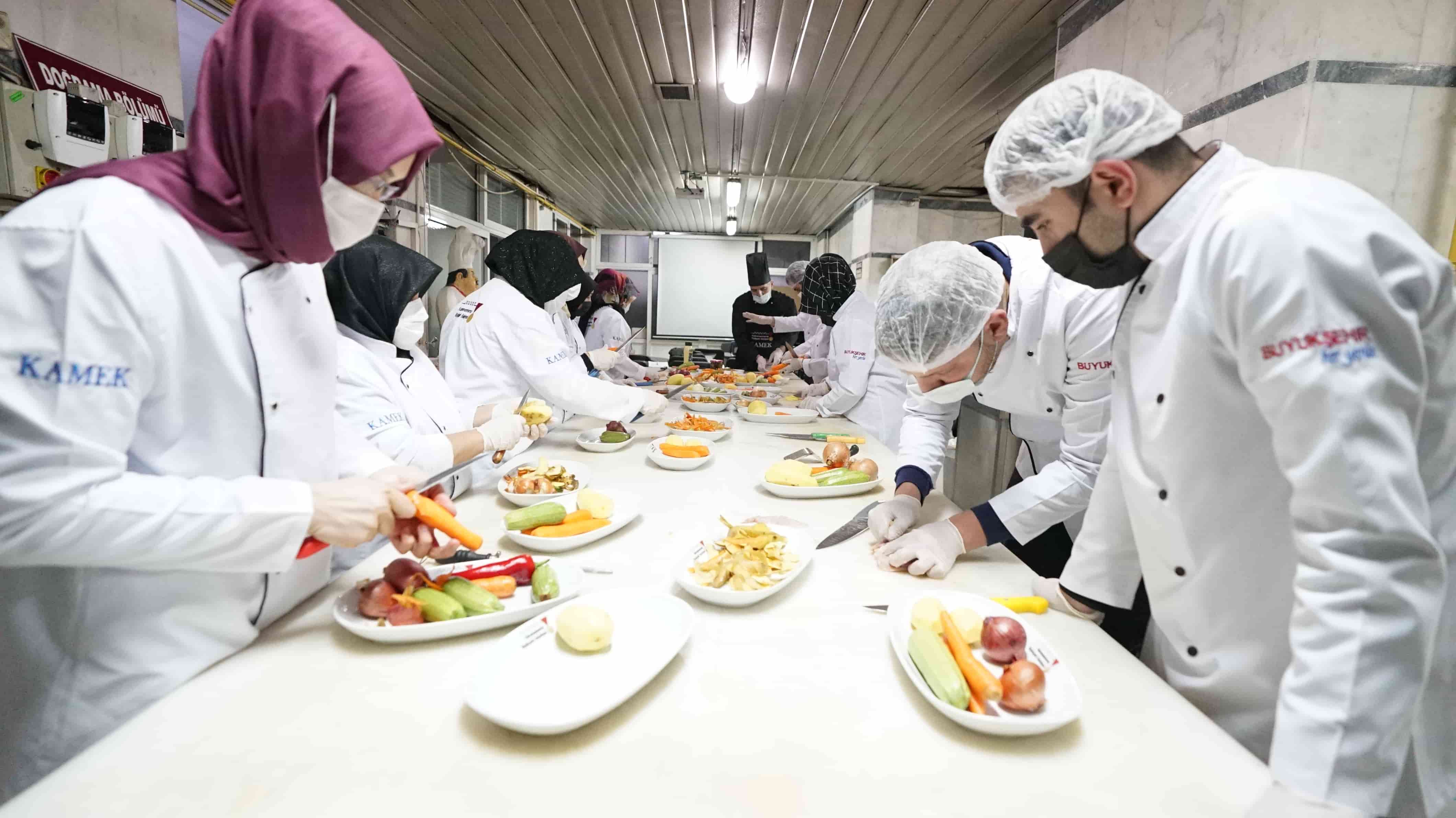 Büyükşehir Belediyesi Meslek Edindirme Kursları’nın (KAMEK) Aşçı Yardımcılığı Kursu yeni dönemde pratik eğitimlere başladı. Birbirinden lezzetli yemekleri pişiren kursiyerler, sertifikalarıyla dünya mutfaklarında çalışabiliyor.