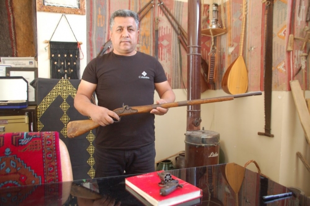 - Durdu Kanat: "Bu koleksiyonu gezen vatandaşlarımız daha sonra babasının, dedesinin antika eşyasını bana teslim ediyor ve burada sergilememi istiyor. Vatandaşlarımız manevi değeri olan eşyaların çatı katında veya başka bir yerde heder olmasını istemiyor"Kahramanmaraşlı PVC pencere ve kapı üretimi ustası Durdu Kanat, yaklaşık 20 yıldır biriktirdiği 250'yi aşkın eski eşyayı "müzem" diye nitelendirdiği atölyesindeki ofisinde sergiliyor. Afşin ilçesindeki atölyesinde üretim yapan Durdu Kanat'ın iş yeri farklı bir özelliğiyle dikkati çekiyor. Ofis olarak kullandığı bölümde yaklaşık 20 yıldır biriktirdiği eski eşyaları sergileyen Kanat, fotoğraf makinelerinden günlük ev eşyasına, telefonlardan dedesinden kalan yadigar tüfeklere kadar çok sayıda eşyayı gözü gibi koruyor. İş yerine gelenleri adeta zamanda yolculuğa çıkartan Kanat, AA muhabirine, geçmişe olan özlemi gidermek için toplamaya başladığı eski eşyaları çevresinden gelen talep üzerine sergilemeye karar verdiğini söyledi. Sergilenen eşyalara müşterilerinin de ilgi gösterdiğini aktaran Kanat, "Amacım gelecek nesillerimize atalarımızın hangi şartlarda yaşadığını, nasıl bir yaşam tarzı sürdüklerini, kas gücüne dayalı malzemeleri nasıl kullandıklarını aktarmak." dedi.- "Daha çok ürüne ulaşmayı hedefliyorum"Topladığı parçaları ilerleyen zaman içerisinde müzeye bağışlamak istediğini aktaran Kanat, şunları kaydetti: "Bu koleksiyonu gezen vatandaşlarımız daha sonra babasının, dedesinin antika eşyasını bana teslim ediyor ve burada sergilememi istiyor. Vatandaşlarımız manevi değeri olan eşyaların çatı katında veya başka bir yerde heder olmasını istemiyor. Atalarımızı, örf ve adetlerimizi unutmadığımızı göstermek, bunları da yeni nesle aktarmak için daha çok ürüne ulaşmayı hedefliyorum. Bu koleksiyonumu daha çok kitleye ulaşması için Afşin Belediyesi tarafından restore edilerek ziyaretçilere kapılarını açan Ömer Ağa Konağı'ndaki müzeye bağışlamak istiyorum. Gelecek nesillerimiz bu ürünlerle sanatın ne kadar önemli olduğunu, şu anki teknolojinin ne kadar kıymetli olduğunu anlayacak ve zamana yolculuk yapacaklar."Kanat, koleksiyonundaki hiçbir ürünü para karşılığı almadığının altını çizerek "Eski malzemeleri bana emanet ediyorlar ve onların adına bu malzemeleri koleksiyonuma katıyorum. Misafir ettiğimiz arkadaşlarımız küçüklüğünde kullandığı bir malzemeyi, oynadığı bir oyuncağı görünce çok duygulanıyor ve gözlerinde pırıltı oluşması beni çok mutlu ediyor." diye konuştu."Müzem" diye nitelendirdiği bölümde 150 ile 200 yıllık eşyaların da olduğunu aktaran Kanat, "Müzemde 250'nin üzerinde eser var. Bunlar içerisinde en önemlisi, Mustafa Kemal Atatürk'ün beylik tabancasının aynı modeli olan tabanca ile dedemden kalan ve Kurtuluş Savaşı'nda kullanılan üsten dolma tüfek. Onlara gözüm gibi bakıyorum." ifadelerini kullandı.