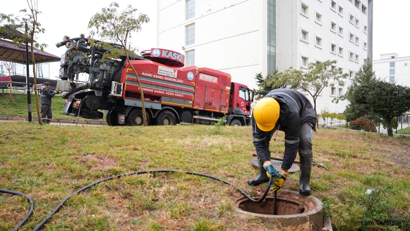 KASKİ Genel Müdürlüğünden çalışmalara ilişkin yapılan açıklamada, “Pazar günü şehir merkezinde etkili olan yoğun sağanak yağış, bazı bölgelerde altyapı sistemlerimizi zorlamış ve hatlarımıza çamur, taş ve çeşitli atıkların taşınmasına sebebiyet vermiştir. Ekiplerimiz tıkanan hatları temizleyerek yeniden işler hale getirmek için çalışmalarını yoğun bir şekilde sürdürüyor. Ayrıca yağış sonucu arterlerde meydana gelen çökme ve bozulmalar da aynı hassasiyetle gideriliyor. Şehrimizin altyapı güvenliğini sağlamak için 7/24 görev başında olan ekiplerimiz, olası yeni yağışlara karşı da gerekli tedbirleri almış ve saha kontrollerini sürdürmekte. Bu doğrultuda tüm birimlerimiz koordineli şekilde çalışmaya devam ediyor” ifadelerine yer verildi.