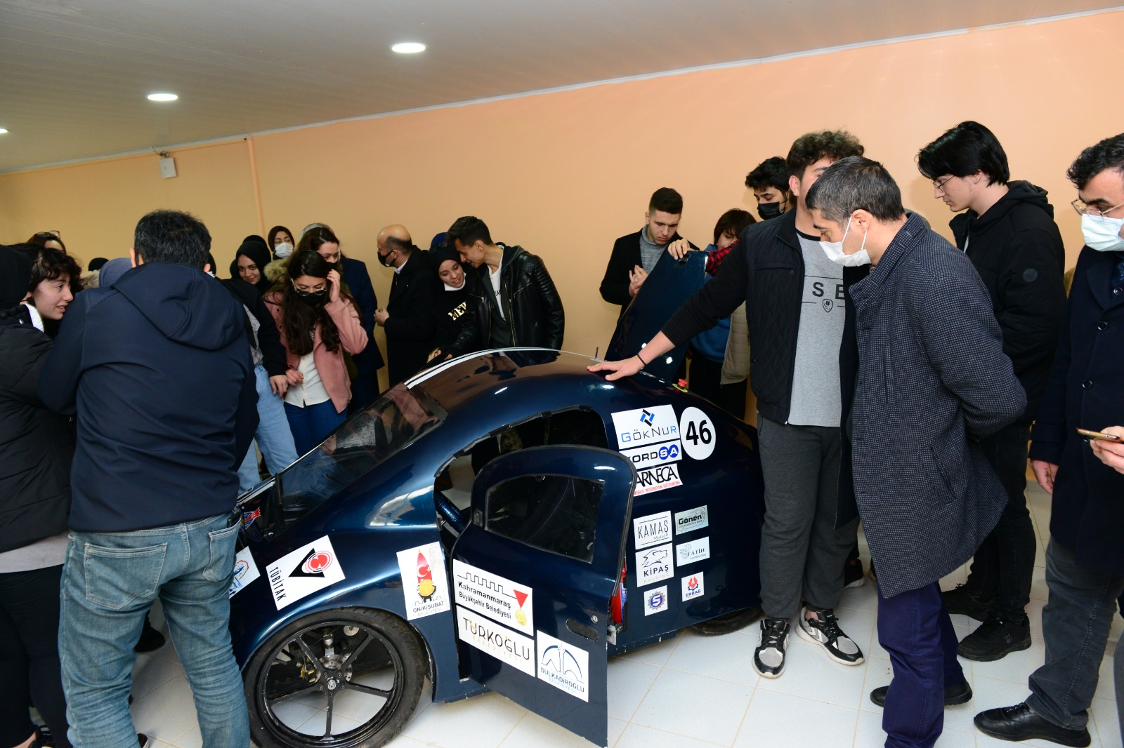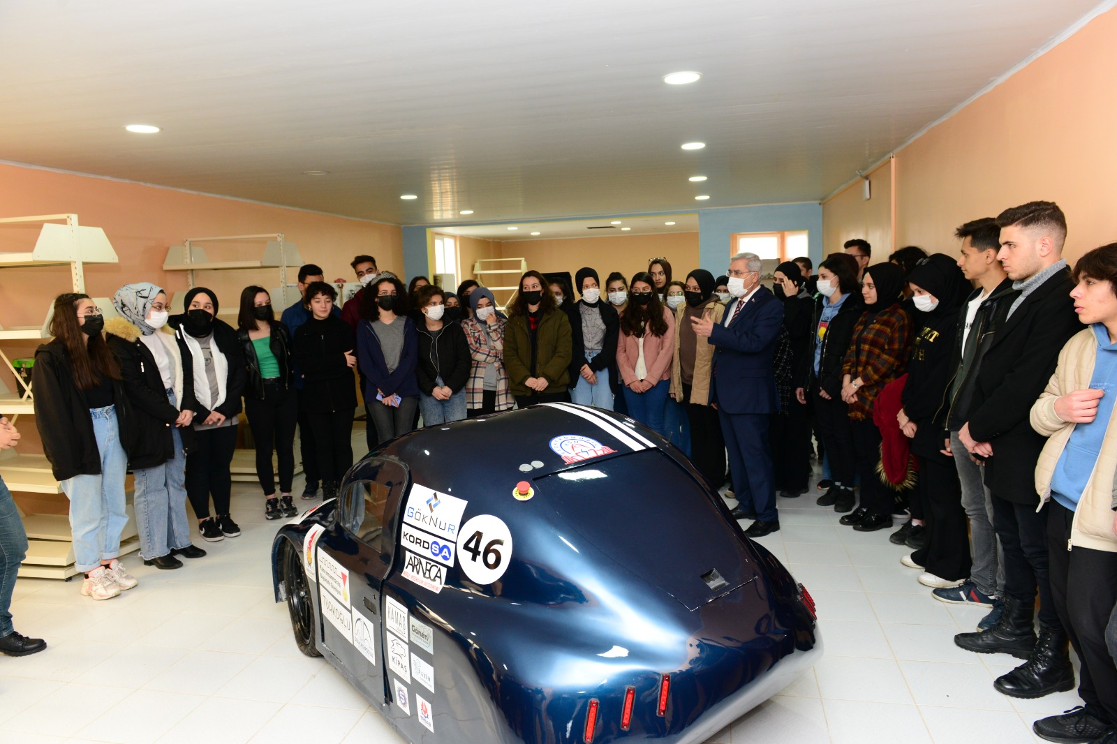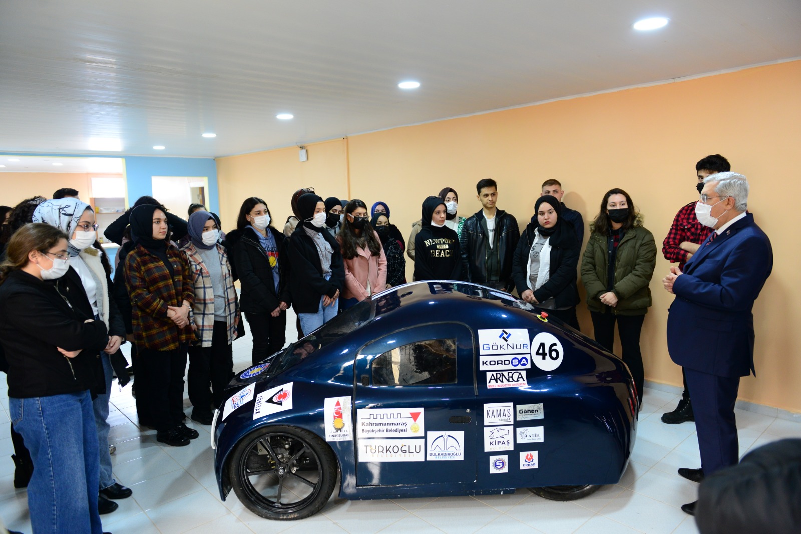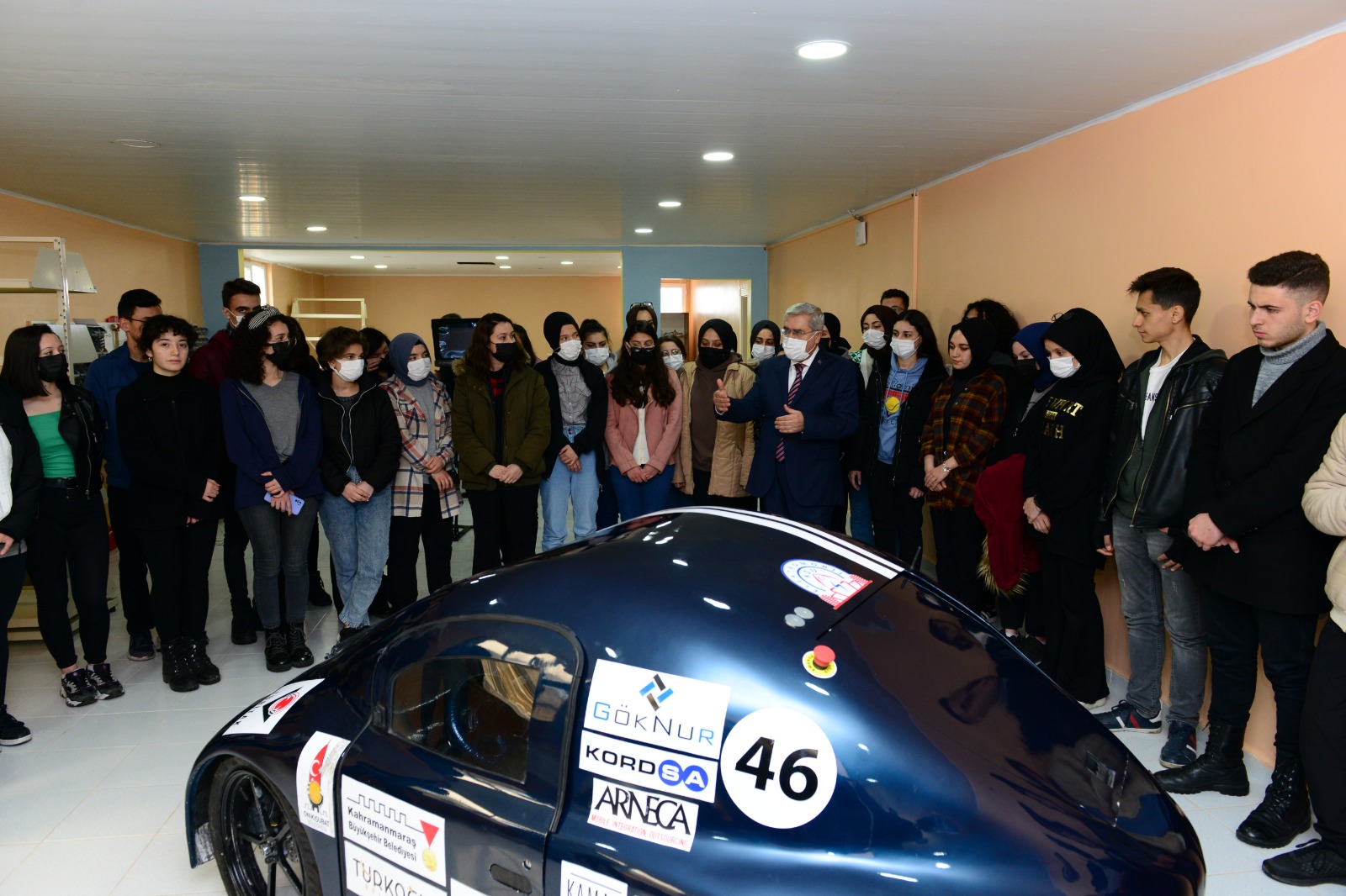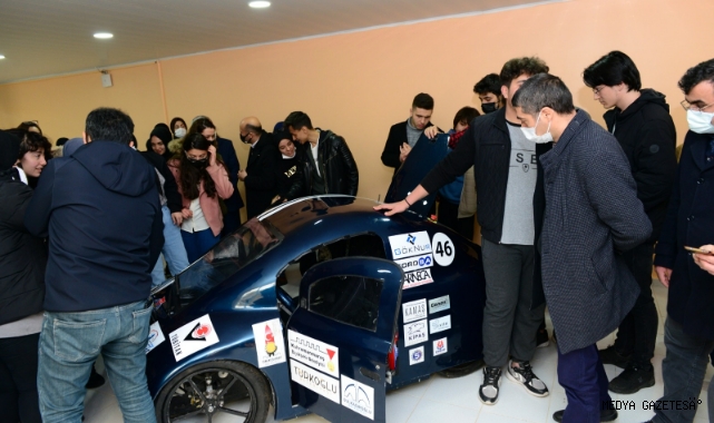 Lise öğrencileriyle birlikte KSÜ Mühendislik ve Mimarlık Fakültesi Teknoloji Geliştirme ve Uygulama Atölyesini gezen Rektör Can, atölyelerde geliştirilen ve TEKNOFEST kapsamında önemli dereceler elde eden elektromobil ve insansız su altı aracı hakkında yetkililerden bilgi aldı.