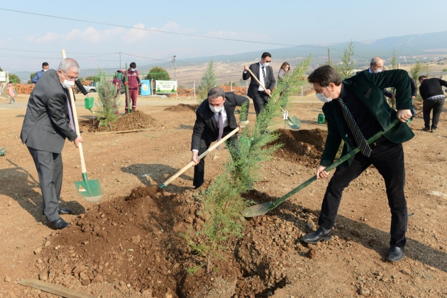 Kahramanmaraş Çınarlı Köyü Ağaçlandırma Sahasında düzenlenen etkinliğe Covid-19 pandemi tedbirleri doğrultusunda sınırlı katılım sağlandı. Etkinliğe Kahramanmaraş Vali Vekili Erol Özkan, Garnizon Komutanı Tuğgeneral Emin Mehmet Terzioğlu, Kahramanmaraş Cumhuriyet Başsavcısı İlker Yazıcı, KSÜ Rektörü Prof. Dr. Niyazi Can, ilçe kaymakamları ve belediye başkanları, KSÜ Orman Fakültesi Dekanı Prof. Dr. Hasan Serin, KSÜ Orman Fakültesi Öğretim Üyesi ve Orman Mühendisleri Odası Başkanı Doç. Dr. Kadir Karakuş ile kurum-kuruluş temsilcileri katıldı.Etkinliğin açılış konuşmasını gerçekleştiren Kahramanmaraş Orman Bölge Müdür Yardımcısı Orhan Çatalçam, 11 Kasım Milli Ağaçlandırma Günü kapsamında Kahramanmaraş’ta 28 noktada 156 bin 200 fidanın toprakla buluşturulacağını söyledi.Açılış konuşmasının ardından fidan bağışında bulunan kuruluşlara sertifikaları Vali Vekili Erol Özkan tarafından verildi. Törenin ardından fidan dikim etkinliğine geçilirken, il protokolü üyeleri ve katılımcılar fidanları toprakla buluşturdu.Etkinlik sonrası değerlendirmelerde bulunan üniversitemiz Rektörü Prof. Dr. Niyazi Can, Cumhurbaşkanımız Sayın Recep Tayyip Erdoğan’ın himayelerinde yürütülen fidan dikim etkinliğine KSÜ ailesi olarak gönülden destek olduklarını ifade etti.“Fidan demek, gelecek demek” diyen Rektör Can, KSÜ’nün personel ve öğrencileriyle birlikte bu hissiyatta olduğunu ve bu tür etkinliklere her zaman destek vermeye hazır olduğunu söyledi.Peygamber Efendimizin (sav) ‘Kıyamet kopuyor olsa ve birinizin elinde bir fide bulunsa, kıyamet kopmadan onu dikebilirse bunu hemen yapsın.’ hadis-i şeriflerini ve Fatih Sultan Mehmet’in ormanlardan bir dal kesenin alacağı ağır cezaya ilişkin sözlerini hatırlatan Rektör Can, “Fidan dikmek bizim inanç ve kültürümüzde önemli bir yere sahip. Millet olarak Peygamberimizin (sav) ve ecdadımızın çizgisinde yaşamaya devam etmeli, fidan ve ağaç sevgisini gelecek nesillere aşılamalıyız.” diye konuştu.Cumhurbaşkanımız Recep Tayyip Erdoğan’ın başlattığı bu seferberliğin geleceğe dönük önemli bir girişim olduğunun altını çizen Rektör Can, “Bizlerde her personelimize, her öğrencimize en az bir fidan dikmelerini tavsiye ediyor ve yıl boyunca bu yöndeki çalışmaları destekliyoruz.” dedi. Pandemi nedeniyle, etkinlik sahalarına gidemeyip kampanyaya uzaktan katılım sağlamak isteyen vatandaşlara, yaşadıkları ortamı güzelleştirmeleri ve yeşil örtüyü geliştirmek amacıyla evlerinin etrafına veya site bahçelerine fidan dikmelerini teşvik edilmesi için talep edenlere bedelsiz fidan verilecek.