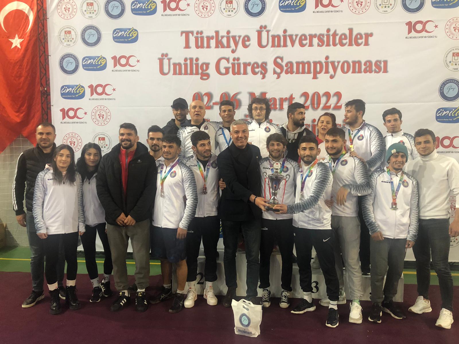 Turnuvada 4 birincilik, 2 ikincilik ve 4 üçüncülük elde eden üniversitemiz Güreş Takımı takım halinde Türkiye şampiyonluğu elde ederek büyük bir başarıya imza attı.