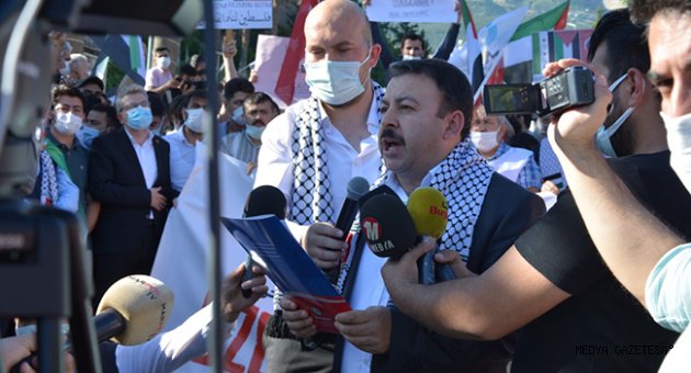 Yalnız, unuttum senin gibi ölmeyi! Filistinli Şair Mahmut Derviş, yarım asır önce böyle haykırdı düşmana, “Kudüş’te” şiiriyle.Bir millet, bir ümmet böyle böyle ölmeyi unuttu…Filistin, saldırı altında…Kudüs, kirli postallar altında eziliyor…Mescidi Aksa, şeytanlaşmış ruhların, Siyonist canilerin tasallutu altında.Ve bir halk direnmeye devam ediyor; iki yüzlü dünyaya, başını kuma gömen idraksizlere, nasipsizlere ve işbirlikçi hainlere inat.Bir halk, bir ümmet ölüme aldırış etmeden, korkak düşmanın üzerine yürüyor, atsız pusatsız.Utan dünya…Utan insanlık… Değerli Dostlar!Aziz Kardeşlerim!Kıymetli Basın Mensupları… Unutmak felakettir…Bugün burada, hatırlatma yapmak için, teröre karşı direnen ve her neresinden bakarsanız bakın insan olmanın onurunu kurtarmak için bir araya geldik.İmanın izzetini korumak adına çoluk çocuk demeden, kadınıyla, erkeğiyle, genciyle yaşlısıyla canını ortaya koyan yiğitlerin mücadelesine omuz vermek, insan olmanın asgari şartını yerine getirmek için toplandık.Evet. insan olmanın anlamı ve asgari şartı bugün bu meydanda toplanmaktır.Covit-19’u stratejik bir aparata dönüştüren, insanlığın bu zayıf anında hayasızca ilk kıblemiz Mescid-i Aksa’ya saldıran, onlarca insanı katleden terörist İsrail’in yaptıklarını lanetlemek için burdayız..Artık şunu çok iyi biliyoruz:Ziyanda olan bu asırda, başta ABD olmak üzere sistemin tüm egemenleri, korsan devlet İsrail’in kana ve teröre dayalı stratejisini küresel ölçekte desteklemekte ve sahip çıkmaktadır. Onun için terörist İsrail bu kadar fütursuz ve hayasız davranmaktadır.Onun için İsrail, kan ve vahşetle şekillendirdiği işgal stratejisini devam ettirmektedir. Nasıl ki orada kardeşlerimiz direniyor…Biz de burada direnmeye devam edeceğizİslam ümmetinin haremine , yüce kitabımızda mübarek kılınan beldeye yapılan saldırıya karşı direnen yiğitlerin sesi olacağız, sözü olacağız.Bu küresel, kirli stratejiye karşı biz de burada direneceğiz. Kardeşlerim!İsrail bir yalan üzerine kurulmuştur.Siyonist rejimin oluşturduğu bu yalan düzeni elbette yenilecek ve yıkılacaktır.Filistin’de, teknolojiye sırtını dayamış küresel Ebrehenin fillerine karşı, taşla sapanla direnen ebabillerin galip geleceğini göreceğiz hep birlikte.Kimileri bu söylediklerimize hamaset diyebilir. Fakat biz imanımızla buradayız, yüreğimizle buradayız ve tarih şuurumuzla buradayız.Tam da bu sebepten diyoruz ki, korku ve şiddet üzerine inşa edilmiş hiçbir sistem ayakta kalamaz. Yani İsrail’in temelinde terör vardır, kan vardır, kin vardır ve ırkçılık üzerine bina edilmiş Siyonist rejimin oluşturduğu ipe sapa gelmez kör bir inanç vardır. Kardeşlerim!Arz-ı mev’udu, Basel’i, Siyon protokolerini, işgal edilen ilk şehir Hayfa’yı bilmeden, Mescid-i Aksa’ya yapılan saldırıları anlayamayız.Vadedilmiş topraklar bu kanlı sistemin motivasyon kaynağıdır. Ama bu bir mücadeledir: hak ve batılın mücadelesi.Ademle şeytanın, iyi ile kötünün mücadelesi.Tarih İsrail’i devlet olarak, bilim Siyonizm’i fikir olarak reddetmiştir.Şimdi sıra Müslümanlarda… İsrail’i kanıyla, kiniyle ve kiriyle, zulmü ve terörüyle zihinlerimizde reddetmenin, işgalci olduğu coğrafyadan ve sistemlerden defetmenin vaktidir.Bunun yolu da hükmü de bellidir:Başkenti Kudüs, manevi zemini Mescidi Aksa olan bağımsız Filistin devletidir. Siyonizm’in bilindik illüzyonlarına aldırış etmeden, kapitalizm ve emperyalizmin sığınağı söylemlerin tazyikine kapılmadan bu kutlu mücadeleye devam edeceğiz.Herkes bilsin ve duysun ki:Filistin, Siyonist işgalden, Filistinliler Siyonist vahşetten çok yakında azade olacak.İnanıyor ve iman ediyoruz, zulüm değil adalet hakim olacak.Kurucu Genel Başkanımız ve Kudüs Şairimiz Mehmet Akif İnan ağabeyin satırlarında derç edilen kucaklaşma gerçekleşecek, Mescid-i Aksa’dan Siyonist postal izleri temizlenecek, insanlık ve Müslümanlar ve onlara kulak veren devletler hem küresel hem de diplomatik intifada başlatacaklardır.Biz buna varız.Biz, Memur-Sen ailesi olarak, tüm sivil toplum kuruluşlarına ve adalet arayışı içinde olan her kesime bu mücadelede yerini alması için bir çağrıda bulunuyoruz.Kudüs’ü unutmak yurdumuzu unutmaktır, inancımızı, kişiliğimizi unutmaktır, anlamımızı unutmaktır. Ya Rabbi!Mirac’a şahitlik ettirdiğin Kudüs’ün özgürlüğüne de bizleri şahit kıl diyor,Filistin direnişine katılan kardeşlerimizi, Kudüs davasını savunanları yürekten selamlıyoruz.Zafer inananlarındır ve zafer yakındır. ABDÜLAZİZ AYDIN KAHRAMANMARAŞ MEMUR-SEN İL BAŞKANI