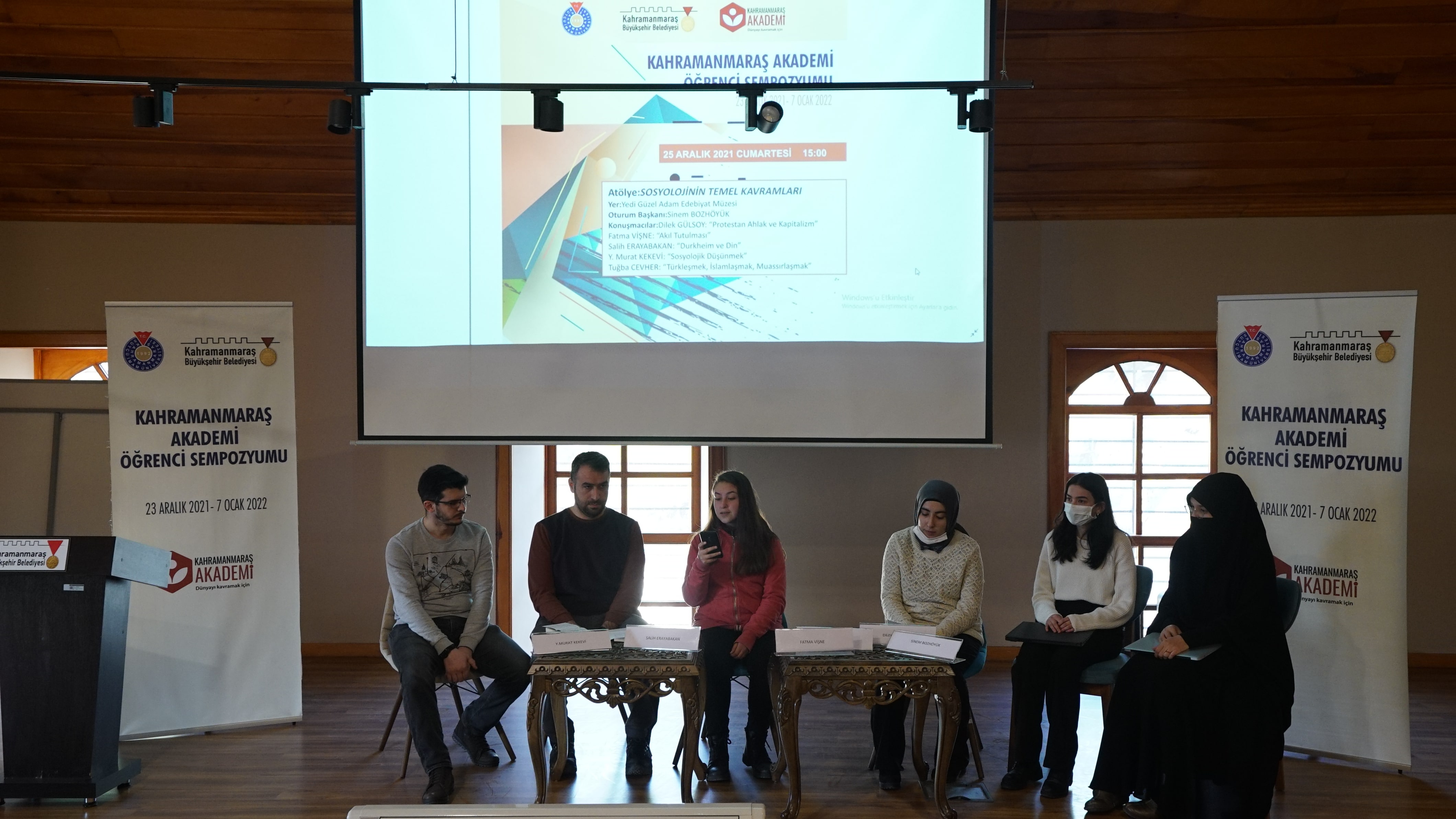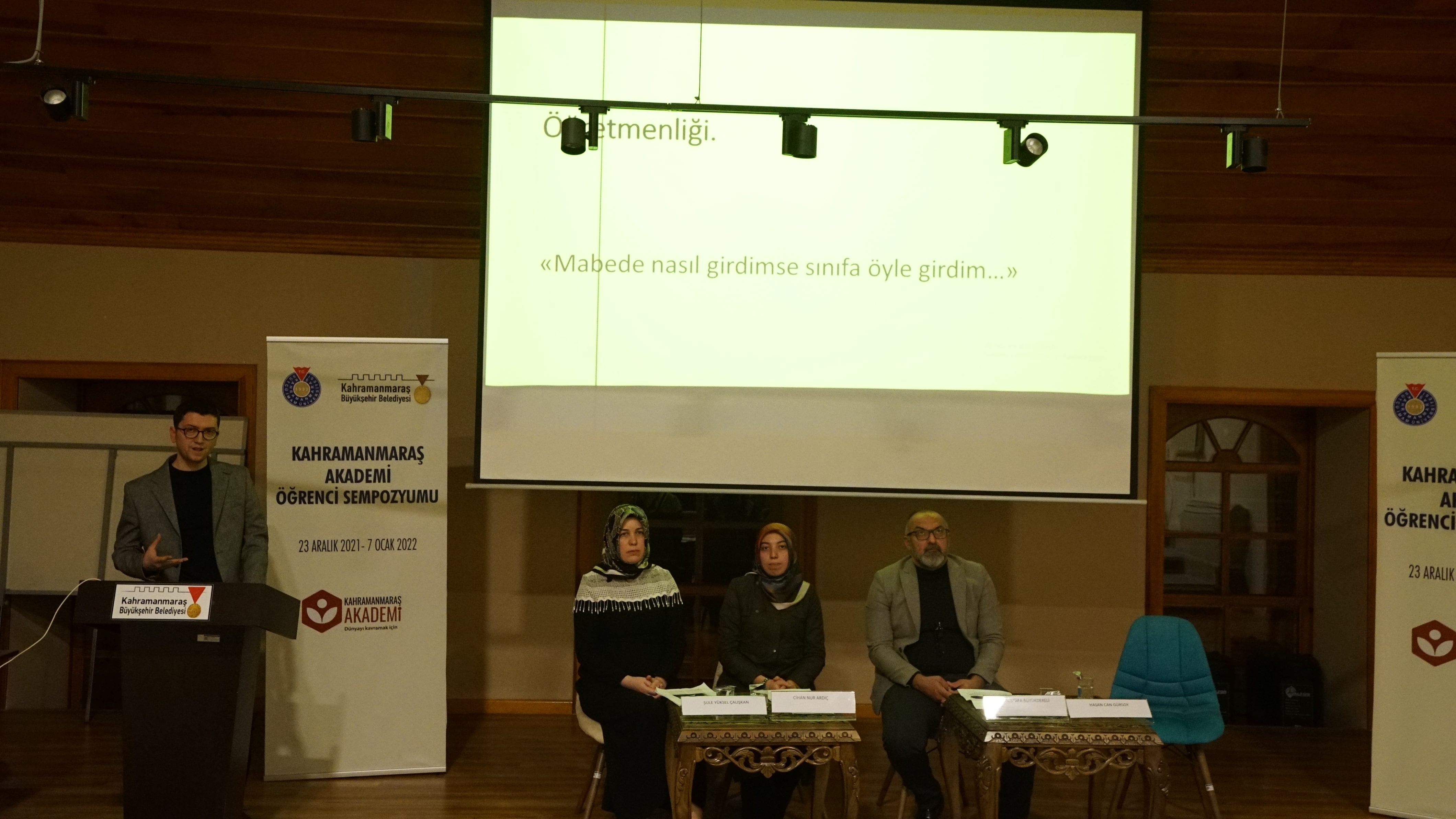 Kahramanmaraş Büyükşehir Belediyesi tarafından düzenlenen “Kahramanmaraş Akademi” güz dönemini Öğrenci Sempozyumu etkinliğiyle tamamlıyor. 7 Ocak Cuma gününe kadar sürecek sempozyum takvimi kapsamında düzenlenen paneller devam ediyor. Son olarak, Yedi Güzel Adam Edebiyat Müzesi’nde iki panel daha gerçekleştirildi. Akademi’de “Sosyolojinin Temel Kavramları” adlı atölyenin eğitmenliğini yürüten Sinem Bozhöyük' ün açılış konuşmasıyla başlayan ilk panelde genç kursiyerler; Dilek Gülsoy, Tuğba Cevher, Fatma Vişne, Salih Erayabakan, Yavuz Murat Kekevi sunumlarını gerçekleştirdi. Düzenlenen etkinliklerin kursiyerlerin akademik serüveninde önemli katkılar sunacağını belirten eğitmen Bozhöyük, “Büyükşehir Belediyesi, kursiyerlerimize çok önemli bir fırsat sundu. Bu sempozyum, katılımcılarımıza akademik gelecekleri için ilk deneyim imkanı oluşturuyor” diye konuştu.
