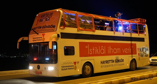 Kahramanmaraş’ın düşman işgalinden kurtuluşunun 101. Yıldönümü etkinlikleri tüm hızıyla devam ediyor. Büyükşehir Belediyesi tarafından gerçekleştirilen etkinliklerde üstü açık otobüsle mahallelerde verilen Mehteran Konseri ve davul-zurna dinletisi yoğun ilgi görüyor. Doğukent, Namıkkemal ve Sümbüllü Mahallelerinde gerçekleştirilen etkinliklerde üstü açık otobüs ile sunulan mehteran konseri ve davul dinletisine vatandaşlar yoğun ilgi gösteriyor.