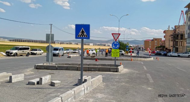 Kahramanmaraş Büyükşehir Belediyesi, Dulkadiroğlu ilçesi Kanuni Mahallesi üzerindeki kavşak çalışmasını tamamlıyor.