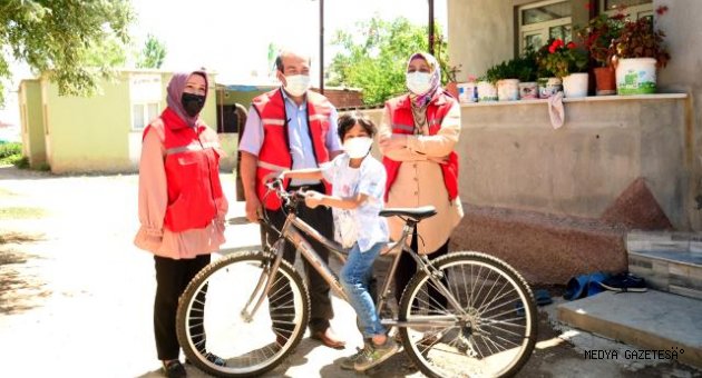 Kahramanmaraş'ın Elbistan ilçesinde 7 yıl önce yakalandığı lösemiyi ilik nakliyle yenen 11 yaşındaki Kerem'e, sosyal medyadan ulaştığı Elbistan Belediye Başkanı Mehmet Gürbüz tarafından bisiklet hediye edildi.