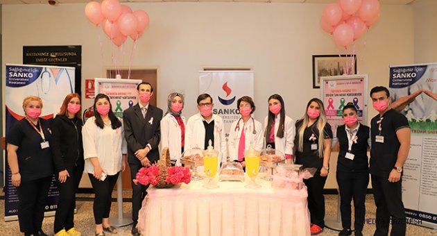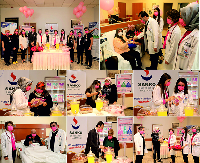 Tıbbi Onkoloji Uzmanı Prof. Dr. Mustafa Yıldırım ve Dr. Öğr. Üyesi Özlem Nuray Sever Tıbbi Onkoloji Kliniğinde yatan ve kemoterapi ünitesinde tedavi gören hastaları ziyaret ederek, pembe karanfil sundu.Hastanede kurulan stantta ise Tıbbi Onkoloji Kliniği Eğitim Hemşiresi Büşra Kısacık, kendi kendine meme muayenesi, Diyetisyen Sena Erek, kanser ve beslenme ilişkisi, Fizyoterapist Mürşide Mantar, kanser ve egzersiz ilişkisi, Tümör Konseyi Sekreteri Biyolog İsmail Kaşoğlu ise erken tanının önemi konusunda hasta, hasta yakınları ve personele bilgi verdi.