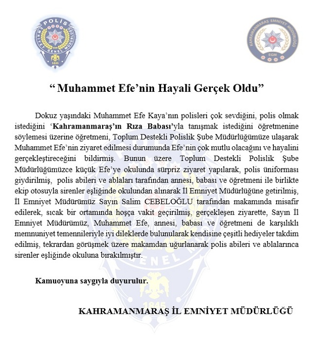GÜNCEL 04 Şubat 2021 - 12:34 Muhammet Efe'nin Hayali Gerçek Oldu GÜNCEL 04 Şubat 2021 - 12:34 Yorumlar Yazdır A Büyüt A Küçült Yorumlar YORUMLAR adlı kullanıcıya cevap x Gönder Son Haberler KAHRAMANMARAŞ BASIN BİRLİĞİ’NDEN KAMUOYU AÇIKLAMASI Başsavcılıktan “fail kaçırıldı” iddialarına yalanlama Rektör Okumuş’tan Vali Ünlüer’e Ziyaret ANAHTAR PARTİ SÖZCÜSÜ FUAT GEÇEN’DEN TOM BARRACK ÇIKIŞI: HADDİNİ... Büyükşehir, Sınav Günü de Özel Gereksinimli Vatandaşları Yalnız... Kahramanmaraş'ta iki kişiyi öldüren sanığa 36 yıl hapis cezası Kahramanmaraş'ta iki kişiyi öldüren sanığa 36 yıl hapis cezası