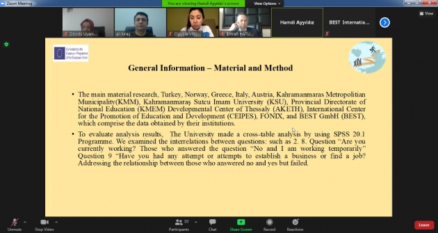Kahramanmaraş Büyükşehir Belediyesi’nin liderliğinde yürütülen Erasmus+ Yetişkin Eğitimi Stratejik Ortaklıklar Programı kapsamında Online Öğrenme Yoluyla Göçmenlerin Girişimcilik Kapasitesinin Arttırılması Projesinin ulus ötesi ikinci toplantısı gerçekleştirildi. Büyükşehir Belediyesi Dış İlişkiler Dairesi Başkanlığı koordinatörlüğünde, yerel proje ortakları Kahramanmaraş Sütçü İmam Üniversitesi, İl Milli Eğitim Müdürlüğü ve yurtdışı ortakları AKETH (Yunanistan), CEIPES (İtalya) ve BEST (Avusturya) temsilcileri katılımlarıyla çevrimiçi gerçekleştirilen toplantıda mülteci ve göçmenlerin girişimcilik kapasitelerin artırılmasına yönelik ilk adım atıldı. Proje faaliyetleri kapsamında mülteci ve göçmenlerin girişimcilik kapasitelerinin arttırılması ve mevcut iş deneyimleri hakkında hedef grupları üzerine yapılan anketlerin sonuçları değerlendirildi. Analizler sonucunda mülteci ve göçmenlerin girişimciliğini artırmaya yönelik “Girişimcilik Yol Haritası” rehber kılavuzunun hazırlanmasına karar verildi.