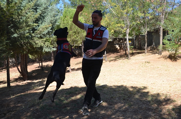 Jandarma Uzman Çavuş Saim Kayabaşılı: "Günümüzde hiçbir teknolojik cihazın başaramadığını, hizmet köpeklerimiz başarabilmektedir"Kahramanmaraş İl Jandarma Komutanlığı bünyesinde görev yapan narkotik köpeği "Safir", hassas burnu sayesinde özellikle uyuşturucu ticaretine geçit vermiyor.Ekiplerin en büyük destekçisi "Safir", her gün kendisi için oluşturulan alanda ev, araç, tren aramaları gibi özel eğitimden geçiriliyor."Safir", Jandarma Genel Komutanlığı bünyesinde bulunan Jandarma At-Köpek Eğitimi ve Meslek Edindirme Kurs Merkez Komutanlığındaki (JAKEM) eğitiminin ardından atandığı kentte düzenlenen operasyonlarda, aktif görevine başlayalı yaklaşık bir yıl olmasına rağmen ekiplerin en büyük destekçisi ve gururu haline geldi.Uyuşturucu arama köpek sorumlusu Jandarma Uzman Çavuş Saim Kayabaşılı, labrador ırkı 2 yaşındaki Safir'in, üstün koku alma yeteneğiyle araçların en gizli yerine saklanan uyuşturucunun bulunmasını sağladığını söyledi.Son bir yılda Safir ile 366 göreve çıktıklarını belirten Kayabaşılı, bu görevlerde 53 kilogram uyuşturucu ile 2 bin 717 adet sentetik hap ele geçirdiklerini ifade etti.- "Aramızdaki sevgi bağını güçlü tutmaya çalışıyoruz"Safir'in kondisyonunun en üst seviyede kalabilmesi için pentatlon ve parkur alanında eğitimlerinin düzenli verildiğini anlatan Kayabaşılı, "Branş eğitimi için JAKEM'in belirlediği program çerçevesinde köpeğimizin eğitimlerini vererek onu sürekli hazır tutmaya çalışıyoruz. Bunların dışında her zaman birlikte olduğumuz için bir arkadaş gibi sohbet edip, aramızdaki sevgi bağını güçlü tutmaya çalışıyoruz." dedi. - "Çocuğumdan bir farkı yok"Kayabaşılı, köpeklerin koku alma oranının insanlara göre 40 kat fazla olduğunu, bu özellikleri sayesinde operasyonlara önemli katkılar sunduklarını vurgulayarak, şunları kaydetti:"Günümüzde hiçbir teknolojik cihazın başaramadığını, hizmet köpeklerimiz başarabilmektedir. Evlerde, araçlarda 'zula' tabir ettiğimiz bölgelere gizlenmiş maddeleri bulmakta köpeklerin bize çok fazla katkısı olmaktadır. Safir'in de en önemli özelliklerinden birisi, sahibine sadık olmasıdır. Bir gece görevinde yaklaşık 300 metre uzaklıkta bir aracın durduğunu fark ettik. Araçtan şüphelendik ve arama yaptık ancak herhangi suç unsuruna rastlamadık. Aracın durduğu noktayı kontrol etmek için gittiğimiz esnada Safir, benden komut almadan 2 metrelik bir duvardan atlayarak içeri girdi. O karanlıkta köpeği ararken 30-40 metre ötede 3 kilogramlık uyuşturucunun yanında durmuş bizi bekliyordu."Safir'in en iyi ekip arkadaşı olduğunu anlatan Kayabaşılı, "Hem ırkından hem de dişi olmasından dolayı bağlılık seviyesi çok yüksek. Hafta sonu eşimle geldiğimde, her zamankinden daha farklı tepkiler göstererek eşimi bile benden kıskanıyor. Bazen ufak bir terslediğimde bana küsüyor. Üzerimizdeki sorumluluk çok büyük. Safir’in çocuğumdan bir farkı yok." diye konuştu.