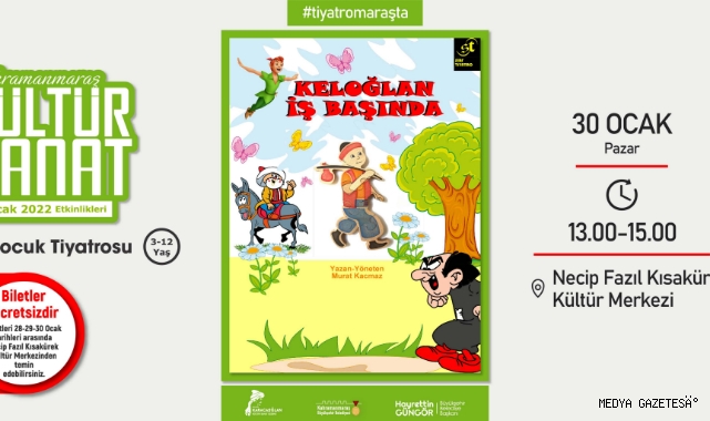 Kahramanmaraş Büyükşehir Belediyesi tarafından geleneksel hale getirilen “Kültür Sanat Sezonu” etkinlikleri Ocak ayında da devam ediyor. 2 – 30 Ocak tarihleri arasında sergiden konserlere, söyleşilerden tiyatrolara kadar toplam 17 etkinlik edebiyatın başkenti Kahramanmaraş’ta sanatseverlerle buluşacak. Takvim kapsamında; Haadi Mousavi ve Şahin Aslan’ın objektifinden çıkan “Elimin Emeği” adlı sergi ziyaretçilerine kapılarını açarken, “Çırpınırdı Karadeniz” eserinin güçlü sesi Azerin konseri kulakların pasını silecek. Minik izleyicileri de etkinliklerde özel bir hafta bekliyor; 5 gün boyunca birbirinden eğlenceli 5 tiyatro gösterisi “Çocuk Festivali” kapsamında sahne alacak. Ocak Kültür Sanat Sezonu etkinlik takvimine https://kahramanmaras.bel.tr/duyuru/2021/11/01/ocak-ayi-kultur-sanat-sezonu-etkinlik-takvimi adresinden ulaşılabiliyor.