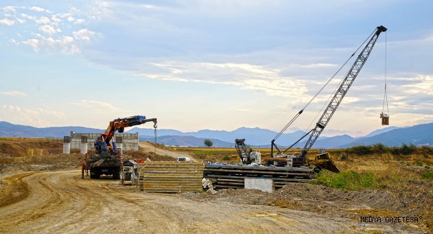Menfezlerin tamamlanarak platform kurulumlarının devam ettiği 210 metre uzunluğundaki yeni köprünün yanı sıra, Ağcalı ve Önsen’i birbirine bağlayacak 5 kilometrelik yeni arterde de zemin dolguları sürüyor.
