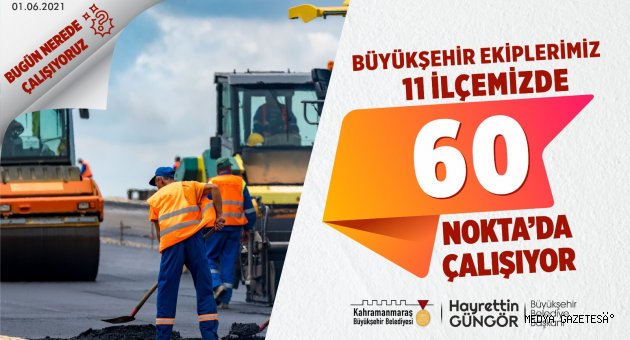 Kahramanmaraş Büyükşehir Belediyesi Fen İşleri Dairesi Başkanlığı’nın 1 Haziran Salı tarihli çalışma takvimi: