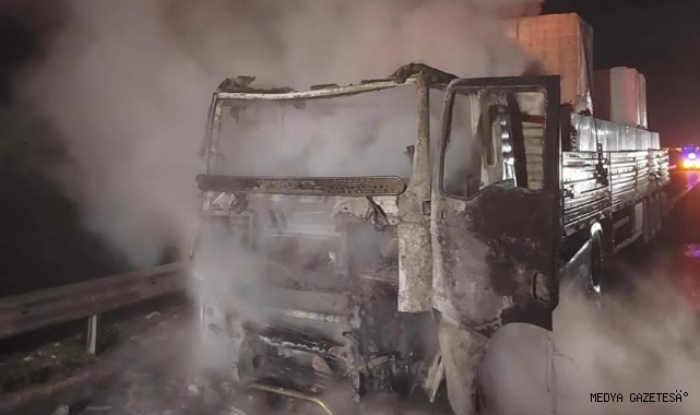 Edinilen bilgiye göre; ilçeye bağlı Narlı Mahallesi mevkiinde seyir halinde olan tır bilinmeyen bir nedenle yanmaya başladı. Yangını fark eden sürücünün ihbarıyla bölgeye itfaiye ekipleri sevk edildi. İtfaiye ekiplerinin zamanında müdahalesine rağmen tır ve yükü kullanılamaz hale geldi.