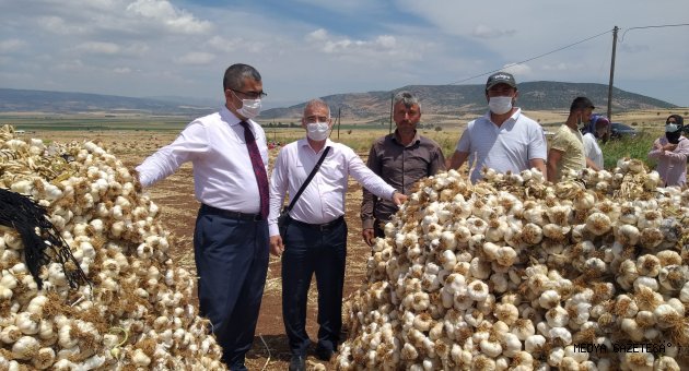Kahramanmaraş İl Tarım ve Orman Müdürü Mustafa BOZKURT; Pazarcık İlçe Tarım ve Orman Müdürü Cemal KARASAKAL ve Pazarcık Ziraat Odası Başkanı Ali ÇİFTEPALA birlikte Pazarcık ilçesinde Sarımsak hasadına katılarak, üreticilerin sorun ve taleplerini dinledi.Kahramanmaraş sarımsağının Türkiye genelinde önemli bir yere sahip olduğunu belirten Pazarcık İlçesi Beşçeşme Mahallesi çiftçilerinden Şeref HAYIRSÖZ bölgenin en kaliteli sarımsağını ürettiklerini ancak pazarlama noktasında sıkıntı yaşadıklarını ve bu konuda yetkililerden yardım beklediklerini dile getirdi.İl Tarım ve Orman Müdürü Mustafa BOZKURT; üreticilerin piyasa dalgalanmalarından etkilenmelerini minimum seviyeye indirebilmek, üretim maliyetlerini azaltabilmek ve hasat edilen ürünü mümkün olan en yüksek fiyattan alıcıya ulaştırabilmek için kooperatif ya da üretici birliği çatısı altında bir araya gelinmesinin çok önemli olduğunu belirterek, "Bu konuda tarım teşkilatının en önemli kuruluşları olan İl ve İlçe Müdürlüklerimiz her daim çiftçilerimizin hizmetindedir. Ben ve ekip arkadaşlarım bu konuda gereken tüm yardımı yapmaya hazırız. Yeter ki üreticilerimiz birlik olsunlar ve emeğinin karşılığını alsınlar." dedi.Konu hakkında çiftçileri İlçe Müdürlüğüne davet eden Pazarcık İlçe Tarım ve Orman Müdürü Cemal KARASAKAL, "Bakanlığımızın geçtiğimiz yıl faaliyete geçirmiş olduğu DİTAP (Dijital Tarım Pazarı) üreticilerimizin ürünlerini pazarlama noktasında önemli bir platform olarak kendini kanıtlamış durumdadır. Sarımsak çiftçilerimizin de bu platformdan faydalanmalarının, üye olmamışlar ise vakit kaybetmeden üye olmalarının ve ürünlerini buradan sergilemelerinin faydalı olacağı kanaatindeyim." ifadelerini kullandı.Devletin önemli kurum temsilcilerinin bizimle beraber Sarımsak hasadına eşlik etmesinden memnuniyetlerini dile getiren Pazarcık Ziraat Odası Başkanı Ali ÇİFTEPALA ise "Her yıl olduğu gibi Türkiyenin en kaliteli sarımsağını bu yıl da çok şükür Pazarcık İlçemizde üretmeyi başardık. Şimdi hasadımızı yapıyoruz ve COVID-19 salgınına karşı herkesi Sarımsak tüketmeye davet ediyoruz." dedi.