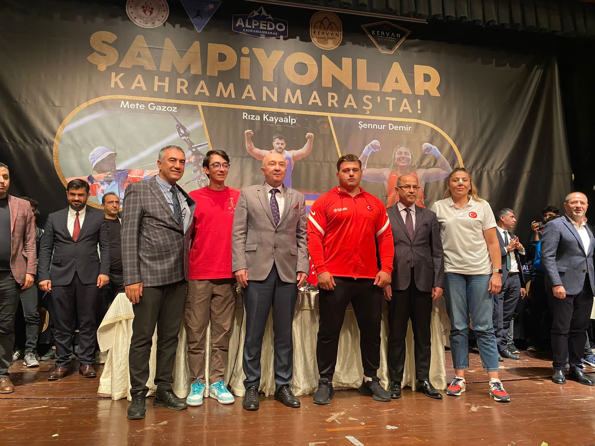 Kahramanmaraş Sütçü İmam Üniversitesi (KSÜ) Rektörü Prof. Dr. Alptekin Yasım, Kervan Lezzet Grubu ve Genç Nesil Bilişim Spor Kulübünün katkıları ile hazırlanan “Şampiyonlar Kahramanmaraş’ta” etkinliğinde ülkemizin gururu dünya şampiyonları ile bir araya geldi.Olimpiyat Şampiyonu Milli Okçu Mete Gazoz, Avrupa ve Dünya Şampiyonu Milli Güreşçi Rıza Kayaalp ve Dünya Şampiyonu Milli Boksör Şennur Demir, Cumhuriyetin 99. yılı etkinlikleri kapsamında Necip Fazıl Kısakürek Kültür Merkezinde düzenlenen “Şampiyonlar Kahramanmaraş’ta” programında Kahramanmaraşlı’larla bir araya geldi.Ülkemizin gururu şampiyonlarımız programda gerçekleştirilen söyleşi ile katılımcılara ve genç sporculara tecrübelerini aktardılar.Programın sonunda protokol üyeleri tarafından şampiyonlara plaket ve hediyeler takdim edilirken Avrupa ve Dünya Şampiyonu Milli Güreşçi Rıza Kayaalp’in plaketini ise Rektör Prof. Dr. Alptekin Yasım takdim etti.Programda Rektör Yasım’a, Rektör Yardımcısı Prof. Dr. Orhan Doğan ve Spor Bilimleri Fakültesi Dekanı Ökkeş Alpaslan Gençay eşlik etti.