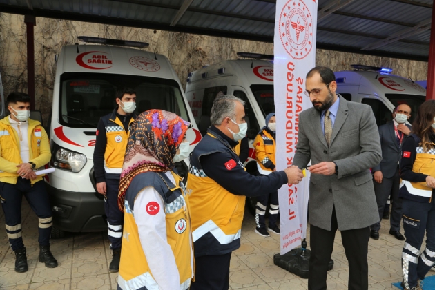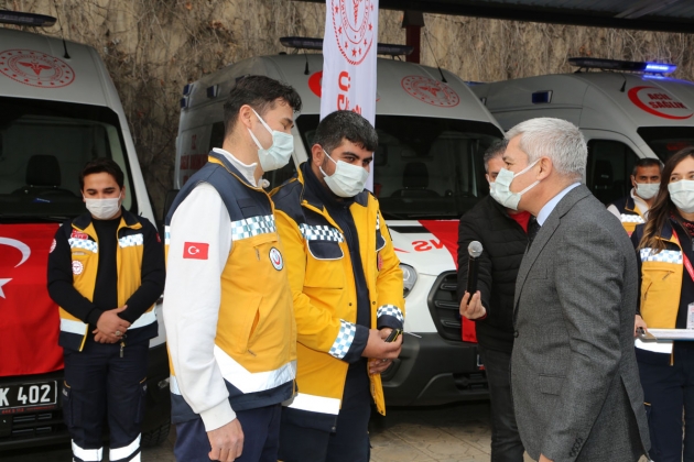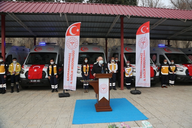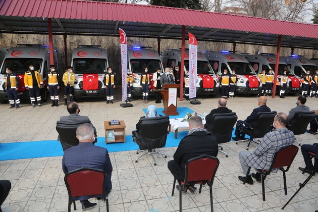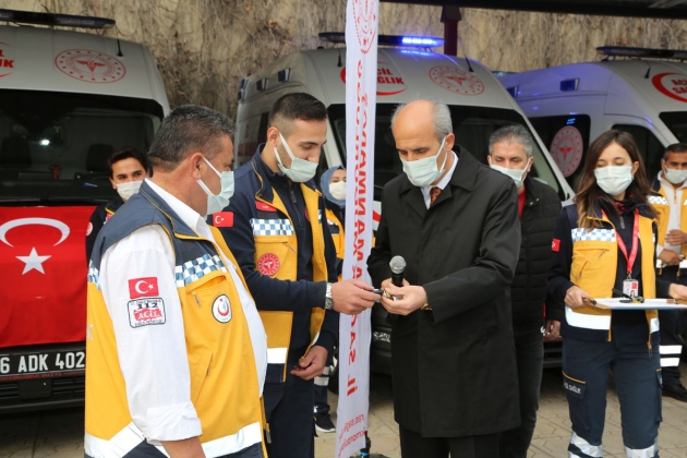 Sağlık Bakanlığımız tarafından tahsis edilen 10 adet yeni 112 Acil Yardım Ambulansı, Vali Ömer Faruk Coşkun, Ak Parti Kahramanmaraş Milletvekilleri Ahmet Özdemir, İmran Kılıç, Habibe Öçal, Cihat Sezal, Ak Parti İl Başkanı Fırat Görgel, Dulkadiroğlu Belediye Başkanı Necati Okay ve İl Sağlık Müdürü Ali Nuri Öksüz’ün katılımlarıyla İl Sağlık Müdürlüğümüz personeline teslim edildi.