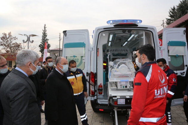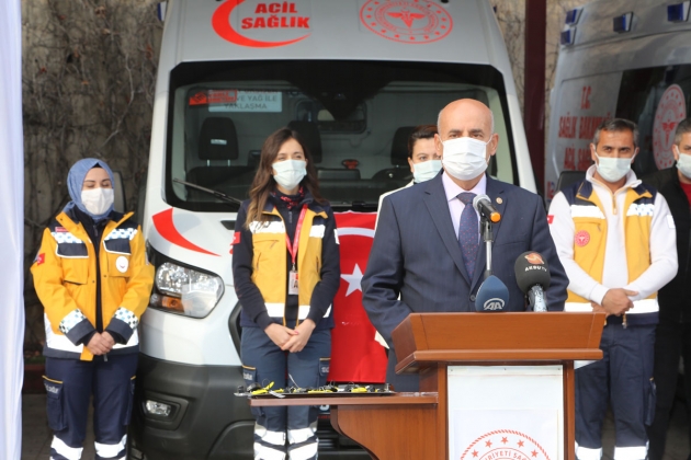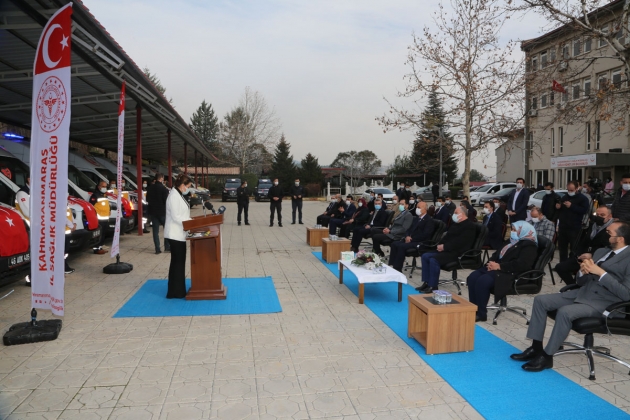 Araç teslim töreninde konuşan Vali Ömer Faruk Coşkun, “Salgın hastalık nedeniyle ilimizdeki sağlık çalışanlarımız ve ilgili kamu kurum ve kuruluşlarımızdaki görevli personelimiz, büyük bir fedakarlık örneği sergiliyor. Sağlık çalışanlarımızın özverisinin yanı sıra; Kolluk Kuvvetlerimizin’de yardımıyla sahada her alanda yapılan denetimler ve vatandaşlarımızın da bu konudaki duyarlılığı sayesinde çok şükür ilimiz genelinde vaka sayılarında gözle görülür bir düşüş yaşanmaktadır. Bundan sonraki süreçte de rehavete kapılmadan, Cumhurbaşkanımız Sayın Recep Tayyip Erdoğan’ın öncülüğünde, Bilim Kurulumuzun tavsiyeleriyle İlgili Bakanlıklarımızın almış olduğu tedbir kararlarına harfiyen uyarak, bu işin de üstesinden geleceğiz inşallah,” dedi.Vali Coşkun ayrıca; yeni ambulansların ilimize hayırlı olması temennisinde bulunarak, “Sağlık Bakanlığımız tarafından İl Sağlık Müdürlüğümüze tahsis edilen 10 adet yeni 112 Acil Yardım Ambulansıyla birlikte ilimiz genelinde bakanlık bünyesinde hizmet veren ambulans sayımız 70’ten 80’e çıktı. Çok şükür, devletimiz memleketimizin en ücra köşesine hizmeti ulaştırıyor. Emeği geçenlerden Allah razı olsun, Allah devletimize ve milletimize zeval vermesin, diye konuştu.Törende konuşan Ak Parti Kahramanmaraş Milletvekili İmran Kılıç’ta, “İnsanı Yaşat ki Devlet Yaşasın” düsturundan hareket edildiğini belirterek, insana verilen her türlü hizmetin büyük önem taşıdığını vurguladı. Kılıç, konuşmasının devamında ise salgın döneminde büyük bir özveri gösteren sağlık çalışanlarına teşekkürlerini iletti.İl Sağlık Müdürü Ali Nuri Öksüz’de yaptığı konuşmada, “Ambulanslar arasında Yeni Doğan Nakil Ambulansı’nın da bulunduğunu belirterek, “Bu ambulansımız ilk defa ilimize tahsis edilmiş, içerisinde elektrikli sedye ve son teknoloji ürünü cihazlar bulunmaktadır. Nitelikleri sayesinde inşallah artık, her türlü zor koşulda da hastalarımıza daha iyi hizmet vereceğiz, çünkü insan hayatı mazeret kabul etmiyor,” diye konuştu.Devir Teslim Töreni, araçların anahtarlarının sağlık çalışanlarımıza teslim edilip incelenmesi ve fotoğraf çekiminin ardından son buldu.