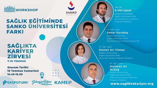 - SANKO ÜNİVERSİTESİ SHMYO MÜDÜRÜ PROF. DR. AYHAN ÖZKUR: “SEVMEYEREK YAPTIĞINIZ BİR MESLEKTE BAŞARI ELDE EDEMEZSİNİZ. MESLEK SEÇİMLERİNİZDE İYİ DÜŞÜNMELİ DOĞRU TERCİH YAPMALISINIZ”T.C. Sağlık Bakanlığı ve Exponet Dijital iş birliğinde düzenlenen Sağlıkta Kariyer Zirvesi’nde, “Meslek Tanıtımı” ve “Sağlık Eğitiminde SANKO Üniversitesi Farkı 2” başlıklı iki workshop gerçekleştirildi.Meslek Tanıtımı oturumuna konuşmacı olarak katılan SANKO Üniversitesi Sağlık Hizmetleri Meslek Yüksekokulu (SHMYO) Müdürü Prof. Dr. Ayhan Özkur, “İki yıllık sağlık bölümlerinin tercih edilme nedeni sağlık alanında olan açık ve taleple birlikte ön lisans programlarının öğrenciyi kısa sürede mesleğe hazırlamasıdır. Diğer bir neden de sağlık alanındaki meslek elemanı talebinin süreklilik göstermesidir” dedi.SANKO Üniversitesi SHMYO’da Ameliyathane Hizmetleri, Anestezi, İlk ve Acil Yardım ile Tıbbi Görüntüleme Teknikleri Programlarının bulunduğunu belirten Prof. Dr. Özkur, “Bu program mezunları, Sağlık Bakanlığı, Sağlık Müdürlükleri, hastaneler, ameliyathaneler, tıp merkezlerinde çalışabilmektedir. Programdan mezun olacaklar Sağlık Bakanlığı'na bağlı kamu ve özel sağlık kurum ve kuruluşlarında ve özel diyaliz merkezlerinde çalışabilmektedir” bilgisini paylaştı.