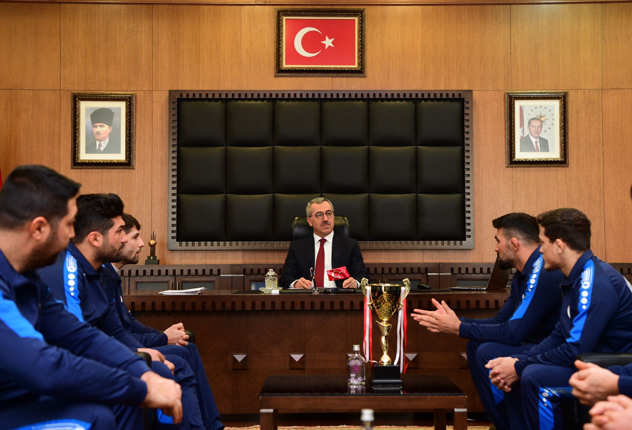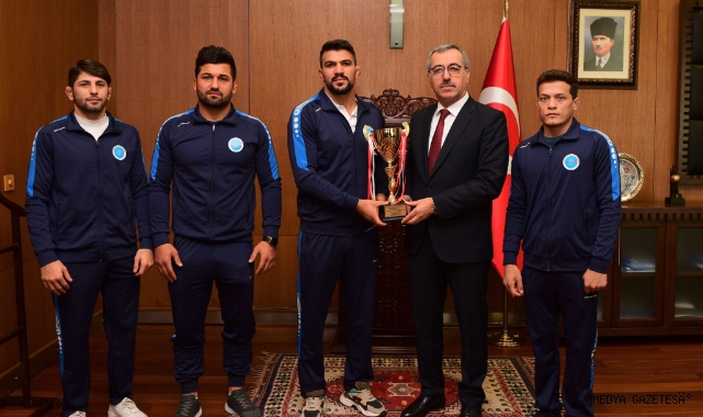 Kahramanmaraş’taki Türkiye Büyükler Serbest Güreş Şampiyonası'nda takım halinde Türkiye Üçüncüsü olan Büyükşehir Belediye sporcularını makamında ağırlayan Başkan Güngör, “42 şehirden 109 takım ve 700’ün üzerinde sporcunun katıldığı şampiyonada sporcularımız takım halinde 3. olarak bize gururu yaşattılar” dedi.