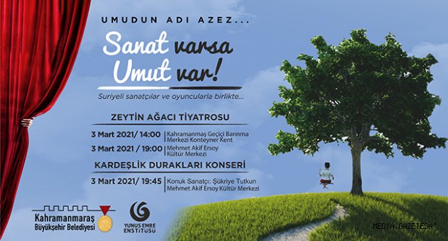 Kahramanmaraş Büyükşehir Belediyesi’nin katkılarıyla 3 Mart Çarşamba günü “Zeytin Ağacı Tiyatro Oyunu ve Kardeşlik Durakları Konseri” düzenlenecek.