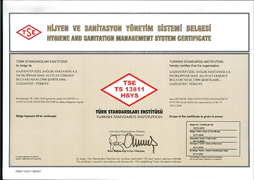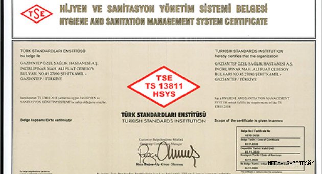-“ALDIĞIMIZ BELGELER, VERDİĞİMİZ HİZMETİN NİTELİĞİNİN ONAYLANMIŞ OLMASI AÇISINDAN BÜYÜK ÖNEM TAŞIMAKTADIR”SANKO Üniversitesi Hastanesi, Türk Standartları Enstitüsü’nden (TSE) ülkemizin “TS 13811 Hijyen ve Sanitasyon Yönetim Sistemleri Belgesi” almaya hak kazanan ilk ve tek hastane oldu.SANKO Üniversitesi Hastanesi Genel Müdürü Dr. Sermet Kileci, Türkiye’nin “tek çatı altında en büyük özel hastanesi” olduklarını anımsatarak, “Kurulduğumuz günden itibaren kalite çalışmalarına büyük önem verdik. Kalite yolculuğuna, 1998 yılında TSE’den Türkiye’de kalite belgesini alan altıncı, özel hastaneler içerisinde dördüncü hastane olarak başladık” dedi.Özellikle COVID-19 salgını nedeniyle hijyen kavramının günlük hayatta daha da önemli hale geldiğine vurgu yapan Dr. Kileci, TS 13811 Hijyen ve Sanitasyon (sanitasyon, hijyen için gerekli olan koşulların sağlanması ve korunması) Yönetim Sistemleri belgesine ilişkin şunları kaydetti:“Temmuz ayında ‘TS 13811 Hijyen ve Sanitasyon Yönetim Sistemi’ni uygulama kararı aldık. ‘Sağlıkta Kalite ve Sağlıkta Akreditasyon Standartları’na göre hazırlanan ve uygulanan Hijyen ve Sanitasyon uygulamalarının içeriğini biraz daha genişleterek TS 13811 Hijyen ve Sanitasyon Yönetim Standartlarını kapsayacak şekle getirdik ve tüm bu çalışmaların sonucunda belgeyi almaya hak kazandık. TS 13811 Hijyen ve Sanitasyon Yönetim Standardının etkin uygulanmasıyla; kurum içinde hijyen ve sanitasyon uygulamalarının standardize edilmesi sağlanmaktadır. Bu standart, hastalarımızın güven ve memnuniyetini artırırken, çalışanlarımızın da motivasyonlarını yükseltmektedir.TS 13811 Hijyen ve Sanitasyon Yönetim Sistemleri Belgesi’ni almak, verdiğimiz hizmetin niteliğinin onaylanmış olması açısından büyük önem taşımaktadır. Ülkemizde bu konuda ilk ve tek hastane olmak bizim için ayrı bir gurur ve mutluluk kaynağı oldu.”