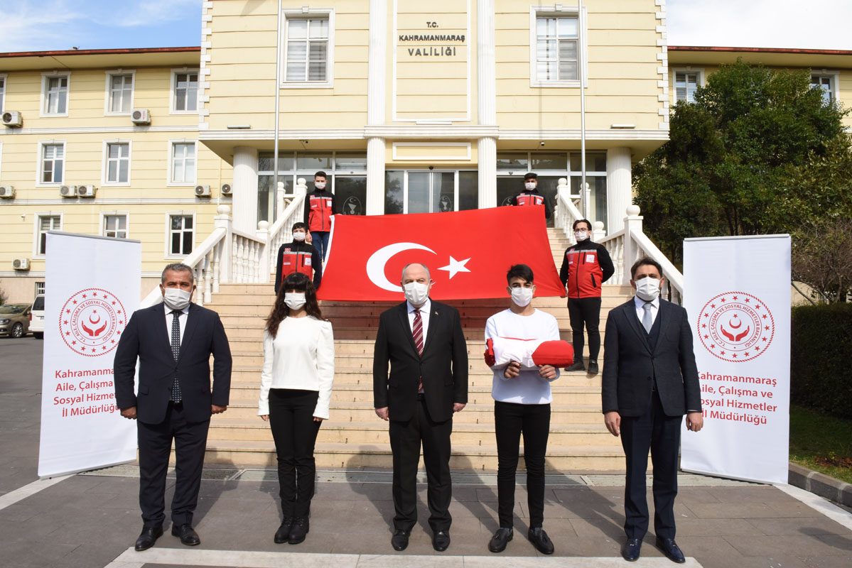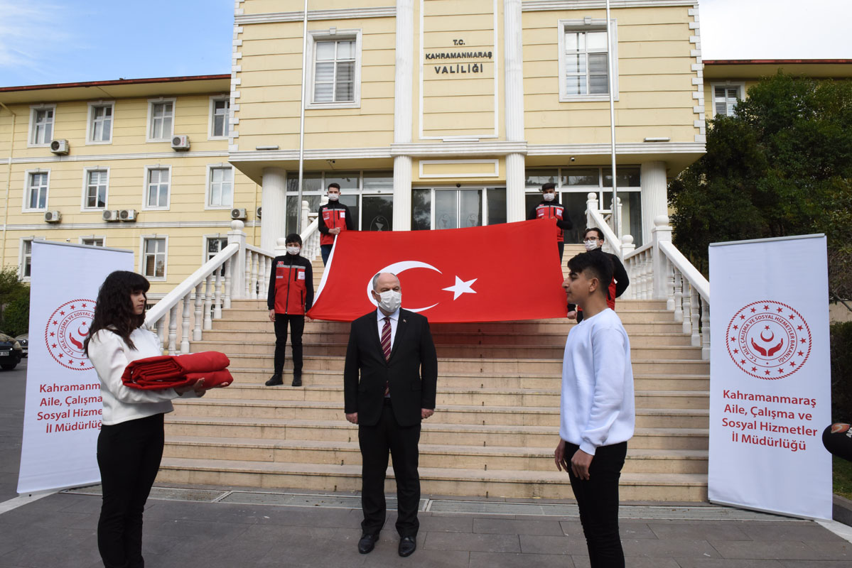 Kahramanmaraş Valiliği önünde Valimiz Ömer Faruk Coşkun’un katılımıyla düzenlenen törende Osmaniye’den İlimize gelen Şanlı Bayrağımız, Aile Çalışma ve Sosyal Hizmetler Bakanlığına bağlı kuruluşlarda kalan gençlerimiz Semiha Okyar tarafından ant içerek Resul Yılmaz’a teslim edildi.