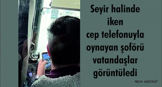 Seyir halinde iken cep telefonuyla oynayan şoförü vatandaşlar görüntüledi