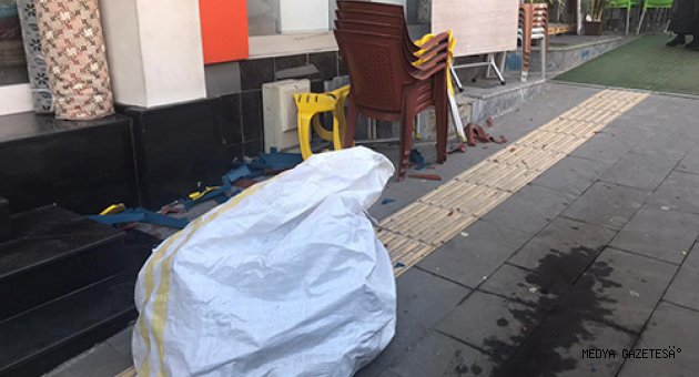 - Tekerleğin cadde boyunca yuvarlanması ve iş yerine çarpma anı güvenlik kamerasına yansıdı