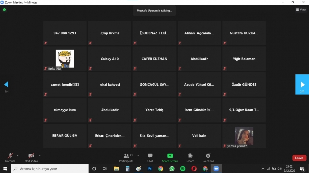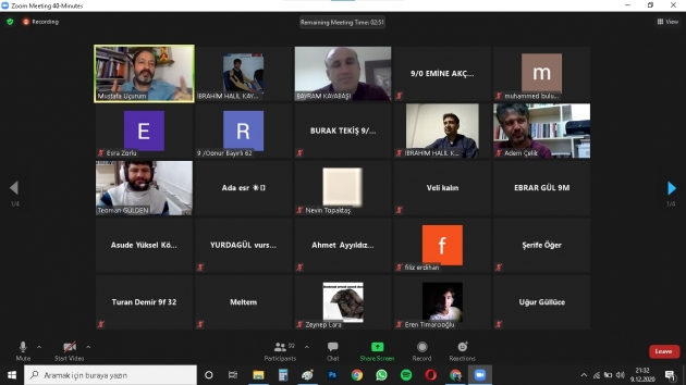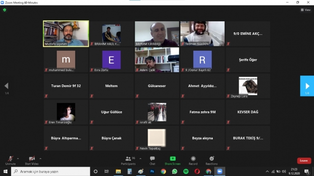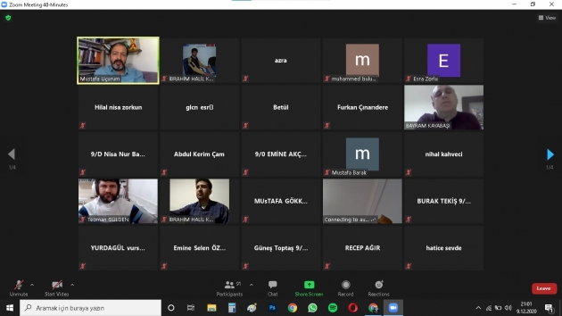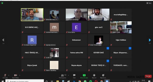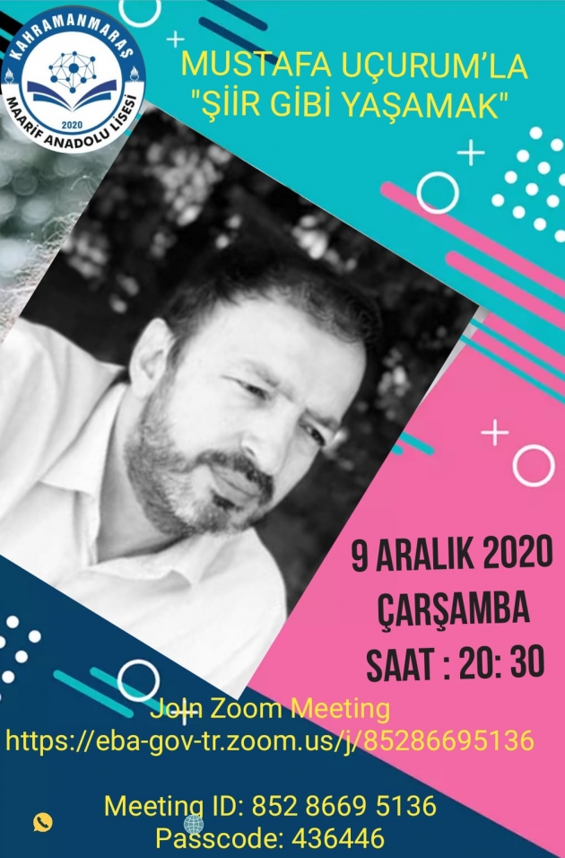 09/12/2020 Çarşamba 20.30'da Maarif Anadolu Lisesi’nde şiir üzerine çevirim içi söyleşi gerçekleştirildi. Maarif Anadolu Lisesi Kültür ve Edebiyat Kulübü tarafından, Tokatlı Şair ve Yazar Mustafa UÇURUM’un konuk olduğu “Şiir Gibi Yaşamak” başlıklı çevirim içi söyleşi gerçekleştirildi. Söyleşiye öğretmen, öğrenci ve velilerin yoğun katılımı oldu. Program Türk Dili ve Edebiyat Öğretmeni Bayram KAYABAŞI’nın koordinatörlüğü ve moderatörlüğünde başladı. Progrmın içeriği hakkında bilgi verdikten sonra Okul Müdürü İbrahim Halil KAYMAZ programın gerçekleştirilmesinde emeği geçen öğretmen ve öğrencilere teşekkür etti. KAYMAZ: “Covid19 nedeniyle öğrencilerimizden uzakta kalmanın hüznünü yaşadığımız bugünlerde bu tür etkinlikler bizlere moral motivasyon kaynağı olmaktadır.” Daha sonra programın güzel geçmesi ile ilgili temennilerini dile getirdi. Program Bayram KAYABAŞI’nın moderatörlüğünde başladı. Şair Mustafa UÇURUM kendisini tanıttı. Şiir yazmaya ortaokulda başladığını ve ilerleyen zamanda gazetelere şiirler yazdığını, şiir dergileri çıkardığını ifade etti. Şiir yazmanın çok önemli olduğunu, düşüncelerin ve duyguların daha geniş bir kitleye ulaşmasını sağladığını ifade etti. Büyüdüğü ortam olan Tokat ve Tokat’ın şair kişiliğine etkilerinden bahsetti. Kahramanmaraş ve şiirin ne kadar bütünleştiğinden, Kahramanmaraş’ın önemli şairler çıkardığından bahsetti. 7. Güzel Adamın şiirin gelişimine katkısını ifade etti. Sivas Cumhuriyet Üniversitesi’nde okurken şiire meraklı 4 arkadaş olduklarını ve kendilerini geliştirmek amacıyla ne yapabileceklerini sorguladıklarını ifade etti. Kendilerini geliştirmek amacıyla arkadaşlarıyla birlikte çok fazla kitap okuduklarını ifade etti. 1996 yılında Martı Dergisini çıkardıklarını ve insanların isterlerse güzel şeyler ortaya koyabileceklerini ifade etti. Öğretmen olduğunda da farklı bir öğretmen olma çizgisine yöneldiğini dile getirdi. “Şiir gibi ne demek?” sorusu üzerine; “sevgilerimizi, dostluklarımızı şiirle anlatmaya çalışırız” dedi. Eskiden şairlerin hep ölü insanlar olduğunu düşündüğünü, yaşayan bir insanın şiir yazabileceğini düşünemediğini ifade etti. Şiir gibi yaşamanın yaptığınız işe bir estetik katmak olduğunu vurguladı. UÇURUM: “Öncelikle her olay her iş başlı başına bir şiirdir. İnsan keyif aldığı bir işi yaparsa ona kalan yorgunluk değil huzurdur. Bizler böyle bakmalıyız her faaliyete. Ben şiiri anlatırken "Kelimelerle bir ruhu nakış nakış dokumak" olarak tanımlarım. Okunan her şiir insanın gönül hanesine bir güzellik sunar. Şiir gibi yaşayabilmek için insanın bir yol göstericisi olmalıdır. Ne kadar şair varsa o kadar şiir gibi yaşamanın tanımı vardır. Benim bir şair olarak adım anılacaksa bunun 'ırmaklarla' birlikte anılmasını isterim. Şairliği canlandırmak kişinin kendi elinde, dünyaya bakış açısında, insanlara yaklaşımındadır.” Dedi. “Şairlik duygusu besleyen gençlere tavsiyeleriniz nelerdir?” Sorusu üzerine: “1) Şiirin ilk kaynağı olarak hep kendinizi görün, 2) İyi şairlerin iyi şiirlerini okuyun, 3) Şiiri hafife almayın, çünkü şiir ciddi bir iştir. 4) En az beş edebiyat dergisi takip edin, 5) Bir şiir yazmak için en az 100 şiir okuyun. (Zaten şiirin beşiği Kahramanmaraş 'ta yaşıyorsunuz. Yedi güzel şairin şehrindesiniz.) Yok ben bunlarla uğraşmadan şiir yazarım diyenlerin yazacakları her satır boş söz kalabalığın önüne geçemez. Mehmet Akif Ersoy’un hep milli uyanışı anlatan şiirler yazdığını dile getirdikten sonra, şiir yazmanın ciddi bir iş olduğunu hazırlık yapmak gerektiğini ve belli bir bilgi düzeyine erişmiş olmak gerektiğini ifade etti. “Şiirinizin gayesi ne?” sorusu üzerine Kuran-ı Kerim’den örnek vererek Şuara Suresi’nin varlığını hatırlatıp bu surenin içeriğinin bir hakikati anlatmak olduğunu ifade etti. Bir insanın şiir yazabilmesi için düzenli olarak en az 5 dergi takip etmesi gerektiğini, yüzlerce şiir okuması gerektiğini ve insanın içinin şiirle dolması gerektiğini dile getirdi. Günümüzde herkesin şair olduğunu, yazmayı sevdiğini fakat kaliteli ve çaba gösterilmiş ürünler ortaya koyulması gerektiğini ifade etti. Şiir yazacakların üstadların şiirlerini kesinlikle okuması gerektiğini vurguladı. Mehmet Akif Ersoy’un yabancı şiirleri anlamak amacıyla Fransızca ve İngilizce öğrendiğini hatırlatan UÇURUM, şiir yazmanın öyle kolay bir iş olmadığına, emek verilmesi gereken bir şey olduğuna da vurgu yaptı. Şair Mustafa UÇURUM’un öğrencilerden gelen yoğun talep üzerine kendisine ait “Haberim Yokmuş Gibi Çek Şiiri”ni okumasıyla söyleşi sona erdi.