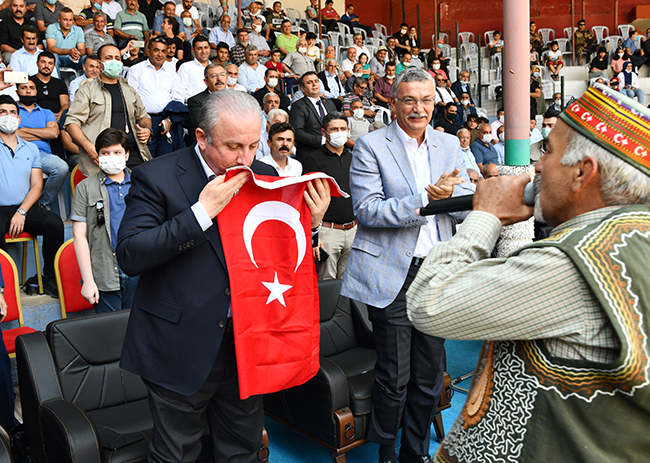 Milli ata sporumuz güreşin, büyük şehirlerden en küçük köylere kadar yiğitlik oyunu olarak nitelendirildiğini, düğünlerin, bayramların ve törenlerin vazgeçilmezi olduğunu aktaran Şentop, "Güreşin bir ihtisas olarak öğretildiği 'Osmanlı Pehlivan Tekkeleri' şimdiki güreş kulüplerinin görevini ifa ediyorlardı. Ayrıca buralardan yetişen pehlivanlarımız, savaş meydanlarındaki başarılarından dolayı 'Türk gibi kuvvetli' sözünü Batılıların belleklerine kazımışlardır." dedi.Modern anlamda spor olarak güreşin Türkiye'de 1910 yılında grekoromen stille başladığını ifade eden Şentop, Cumhuriyet döneminde de ata sporu güreşin korunması gereken bir gelenek olarak görüldüğünü ve desteklendiğini belirtti.- "Başarılı olmak için yılmadan, yorulmadan çalışmalıyız"Şentop, Cumhuriyetin ilanından önce 1922 yılında oluşturulan Türkiye İdman Cemiyetinin bünyesine güreşi de aldığını aktaran Şentop, şunları kaydetti:"Tarihi süreç içerisinde geliştirilerek 'yağlı, aba, şalvar, kemer ve karakucak' güreş çeşitleri eski formuyla günümüze kadar yaşatılmış bundan sonra da yaşatılmaya devam edecektir, Allah'ın izniyle. Anadolu ve Rumeli'yi yurt edinen Osmanlı atalarımıza ait 'yağlı güreş Cumhuriyet döneminde de korunması gereken bir gelenek olarak görülmüştür. Uluslararası Olimpiyat Oyunları tarihinde ilk defa altın madalya alarak Türk bayrağını göndere çektiren sporcumuzun 'güreşçi' olması tabii ki tesadüf değildir. Arkasında bin yılların geleneği ve derinliği asırlar öncesine dayanan Türk insanının güreş tutkusu vardır.Fransa'da, İngiltere'de karşısına çıkan rakiplerinin sırtını yere vurmayı başardığı için 'Civan Pehlivanı' namına değer görülen Kurtdereli Mehmet Pehlivan, kendisine 'Civan Pehlivanı' namını kazandıran gücü nereden aldığını şöyle ifade etmiştir, 'Güreşirken bütün Türk milletini arkamda hisseder, onun şerefini korumak için elimden geleni yapardım.' Kurtdereli Mehmet Pehlivan'ın bu sözünü herkes kendine şiar edinmelidir. Yaptığımız her işte milletimize hizmet etmenin sorumluluğunu taşımalı ve başarılı olmak için yılmadan, yorulmadan çalışmalıyız. Azimli, gayretli olmalı ve hedefimize ulaşmak için çabalamalıyız. Unutmayalım ki insan yenilince değil pes edince tükenir. Biz de fert olarak, millet olarak hiçbir zaman pes etmedik asla pes etmeyeceğiz. Karşılaştığımız sorunlarla mücadele etmeli, karşılaştığımız sıkıntıları, maruz kaldığımız felaketleri birbirimizi üzmek, yaralamak için vesile olarak görmemeliyiz ve aynı vatanın evlatları olduğumuz şuuruyla hareket ederek çarenin, çözümün bir parçası olmalıyız. Geçmişten geleceğe taşıdığımız yüzlerce yıllık geleneğimizi yaşatmak ve yeni nesillerle buluşturmak için gayret eden her kardeşime teşekkür ediyorum. İnşallah, geleneksel ata sporumuz olan güreş, sizlerle gelecek kuşaklara naklolacak. Bugün burada centilmence yarışan ve kazanan kardeşlerimi kutluyorum. Düzenlenen bu turnuvanın ilelebet sürmesini, gelecek nesillere örnek sporcular olarak refakat etmenizi temenni ediyorum. Bu vesileyle ahirete irtihal eden bütün pehlivanlarımıza Cenabıhak'tan rahmet diliyorum. Onlar ebedi olarak Türk milletinin bağrındadır."Programa TBMM İçişleri Komisyon Başkanı Celalettin Güvenç, Kahramanmaraş Valisi Ömer Faruk Coşkun, Büyükşehir Belediye Başkanı Hayrettin Güngör, AK Parti Milletvekili İmran Kılıç, Mehmet Cihat Sezal, Ahmet Özdemir, Habibe Öçal, AK Parti İl Başkanı Fırat Görgel ile davetliler de katıldı.