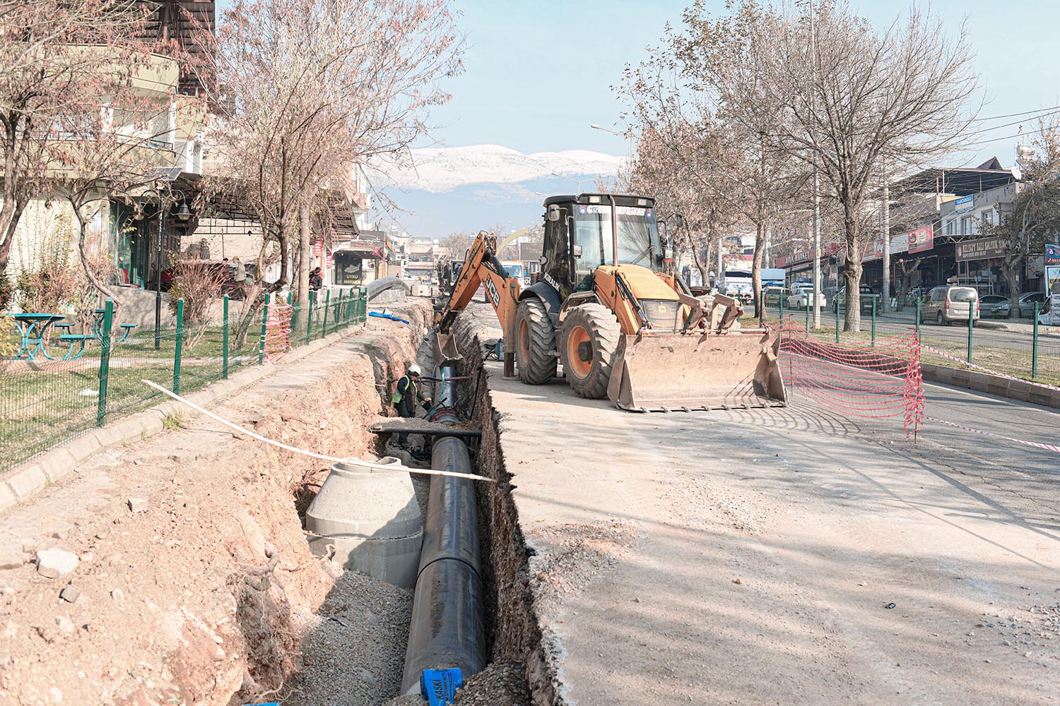 Kahramanmaraş Su ve Kanalizasyon İdaresi (KASKİ) Genel Müdürlüğü Dulkadiroğlu İlçesi Tevfik Kadıoğlu Bulvarında (Doğukent Kavşağı) içmesuyu hattı yer değiştirme (deplase) ve ilave kanalizasyon hattı çalışmalarına başladı.