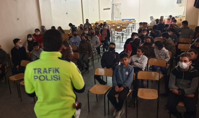 Kahramanmaraş’ın Pazarcık ilçesinde trafik ekipleri, öğrencileri okullarında ziyaret ederek, bilgilendirmede bulundu.