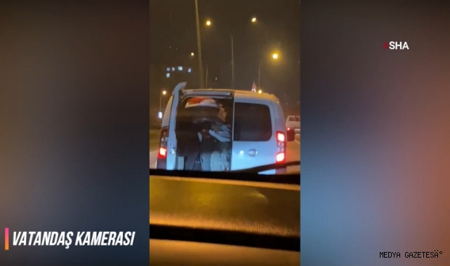 Kahramanmaraş-Adana yolu üzerinden şehir merkezi istikametine seyir halinde olan sürücüler, aynı istikamette önlerinde ilerleyen aracın bagajının açık olduğunu fark etti. Bagaj kapısı açık ve içerisinde insanların olduğunu gören sürücüler, cep telefonu kamerasıyla yaşananları kaydetti.