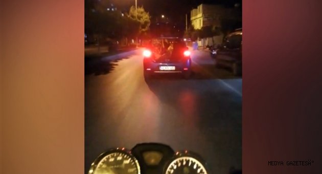 İlçeye bağlı Doğukent Mahallesi üzerinde seyir halinde olan motosiklet sürücüsü, aynı istikamette önünde ilerleyen aracın bagajının açık olduğunu fark etti. Araç sürücüsünü uyarmak için hızını artıran motosiklet sürücüsü gördüklerine inanamadı. Kask kamerası tarafından kaydedilen görüntülerde, araç içerisinde ve bagajında aralarında çocuklarında bulunduğu insanların seyahat ettiği görülüyor.