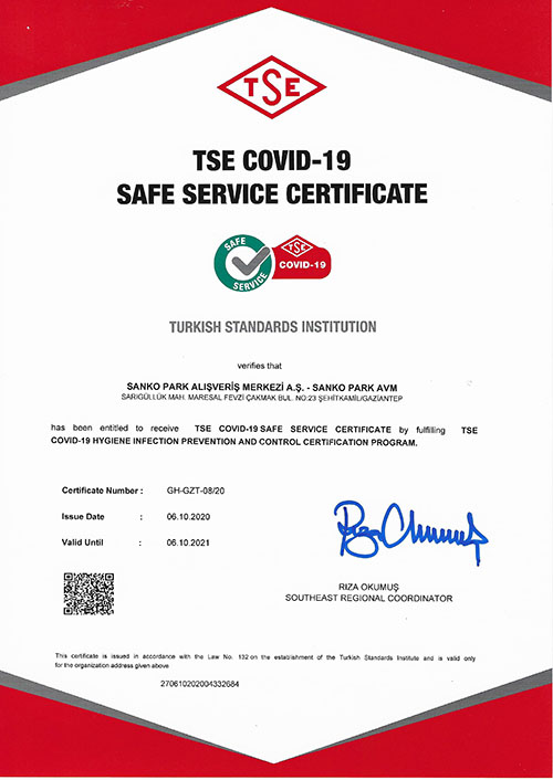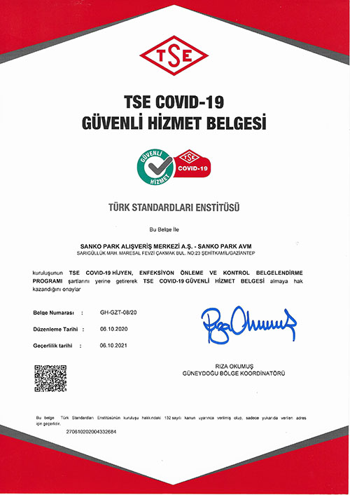 Sanko Park Alışveriş Merkezi, Türk Standartları Enstitüsü (TSE) tarafından uygulanan Covid-19 Hijyen, Enfeksiyon Önleme ve Kontrol Belgeleme Programı’nın şartlarını yerine getirdiğinden dolayı Gaziantep’in ‘’TSE COVID-19 Güvenli Hizmet Belgesi’ne sahip ilk ve tek alışveriş merkezi oldu.Sanko Park Alışveriş Merkezi Genel Müdürü Niyazi Büyükaksu, AVM’lerin yeniden açıldığı günden itibaren ziyaretçilerine, yönetim ve mağaza personeline sağlıklı alışveriş ortamı sağlamak için her türlü önlemi alan ve süreci titizlikle yöneterek TSE’den belge alınmasını sağlayan ekip arkadaşlarını kutladığını söyledi.TSE Covid-19 Güvenli Hizmet Belgesi’nin önemine değinen Büyükaksu, “Yeniden hizmet vermeye başladığımız günden itibaren titizlikle yürüttüğümüz çalışmalarımızı belgelendirmenin gururunu yaşıyoruz” dedi.İlk andan itibaren büyük bir duyarlılıkla ilgili talimatların öngördüğü koşulların da üzerinde aldıkları önlemlerle hijyen kurallarına büyük bir özenle uyduklarını kaydeden Büyükaksu, ‘Gaziantep’in ilk TSE Covid-19 Güvenli Hizmet Belgesi alan alışveriş merkezi olmaktan dolayı mutluyuz” diye konuştu.SANKO PARK2009 yılında faaliyete başlayan Sanko Park, toplam 127.489 m2 inşaat alanı ve 56.144 m2 kiralanabilir alanı ile bünyesinde her ihtiyaca yanıt veren 180 mağaza bulundurmaktadır.