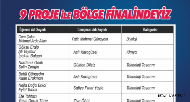 SANKO ORTAOKULU ÖĞRENCİLERİNİN DOKUZ PROJESİ BÖLGE FİNALİNDE