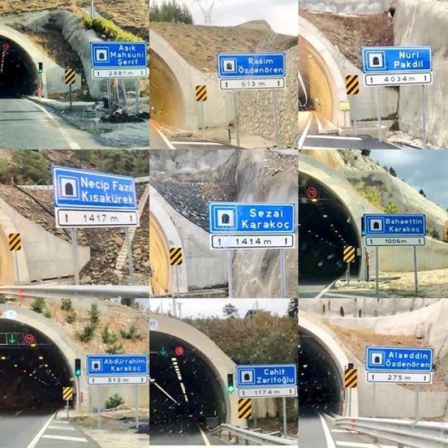 - Yol üzerindeki tünel ve viyadüklerde Türk edebiyatının önde gelen isimleri dikkati çekiyor
