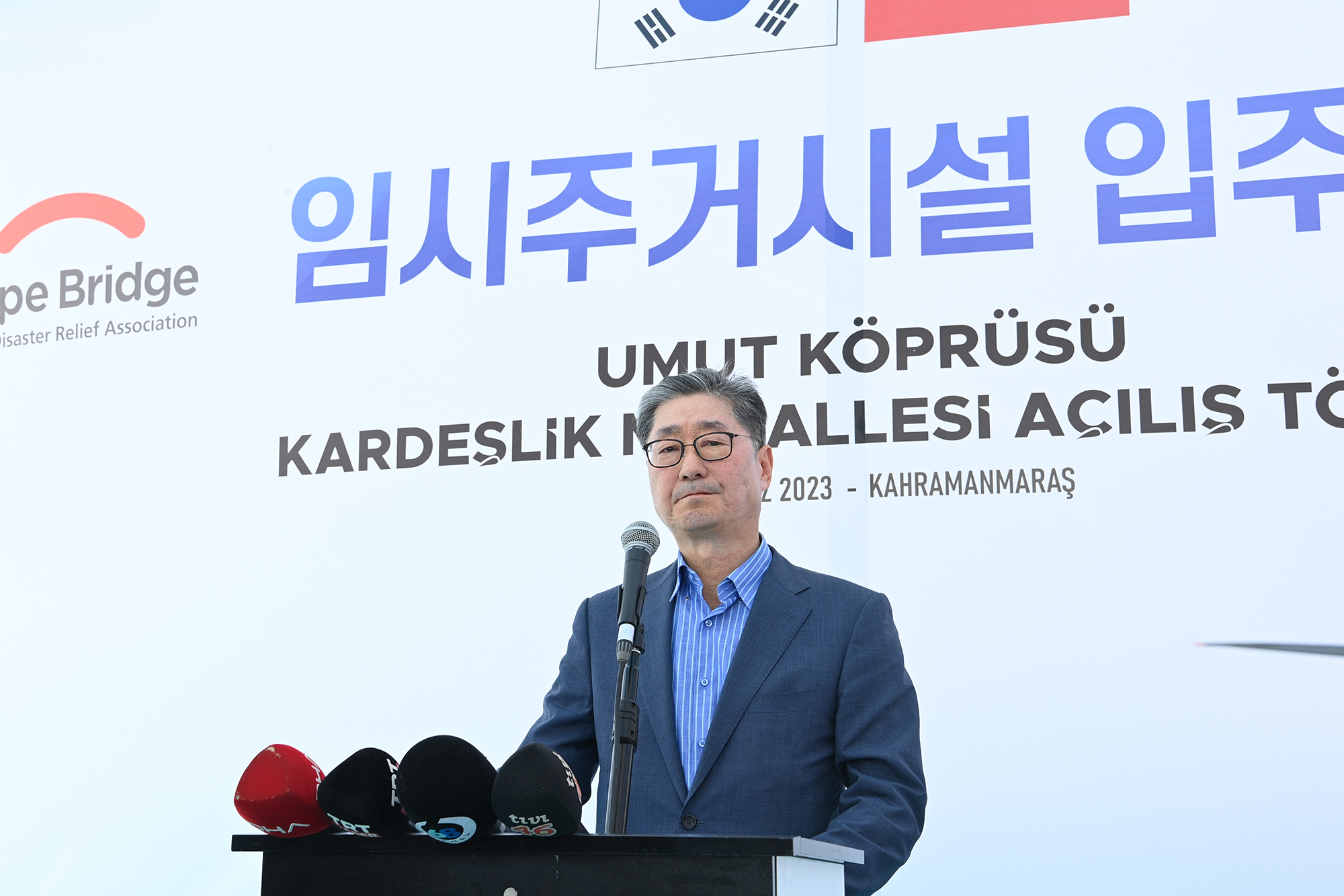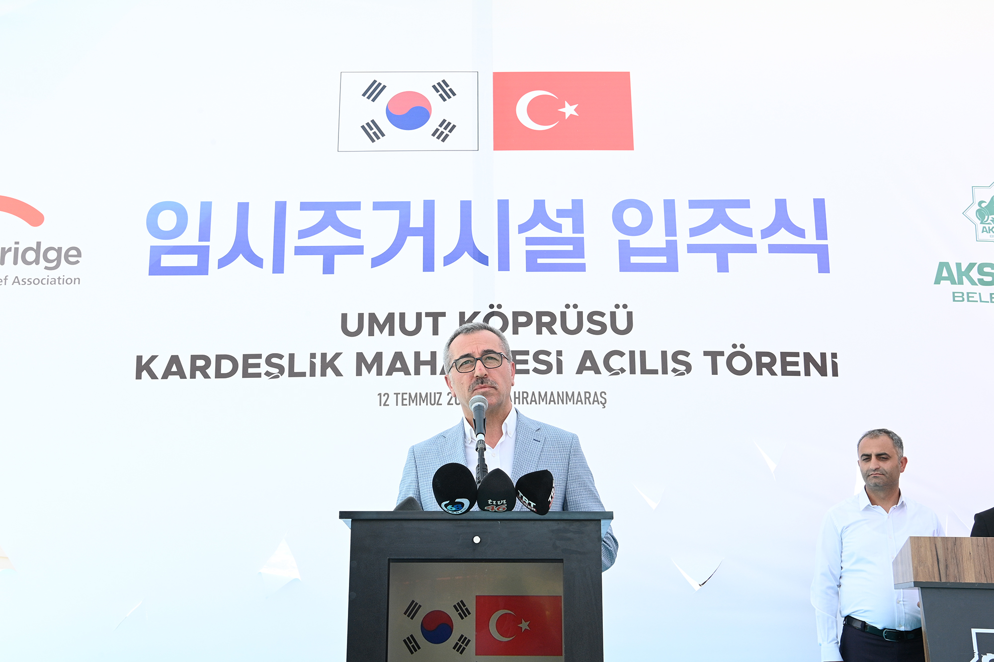 Kahramanmaraş Büyükşehir Belediye Başkanı Hayrettin Güngör, Aksaray Belediyesi ve Güney Kore Hope Bridge Derneği iş birliğiyle oluşturulan ‘Türkiye – Güney Kore Kardeşlik Mahallesi Konteyner Kent’in açılış programına katıldı. Erkenez Mahallesi’nde, toplamda 200 depremzede aileye ev sahipliği yapacak geçici konaklama merkezinin açılış programında; Güney Kore Ankara Büyükelçisi Won IK Lee, Aksaray Belediye Başkanı Dr. Evren Dinçer, Hope Bridge Derneği Başkanı Pilho Song, STK temsilcileri ve vatandaşlar da yer aldı. Programın açılış konuşmasını yapan Aksaray Belediye Başkanı Dr. Evren Dinçer ve Büyükelçi Won IK Lee, depremzedelerin üzüntülerini paylaştıklarını belirterek açılışı gerçekleştirilen konteyner kentin hayırlı olmasını diledi.