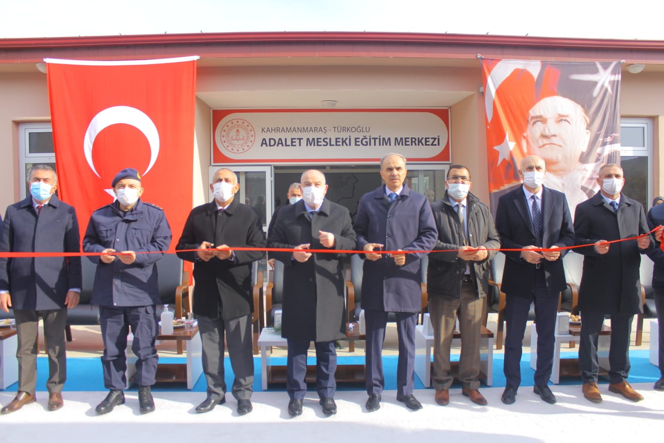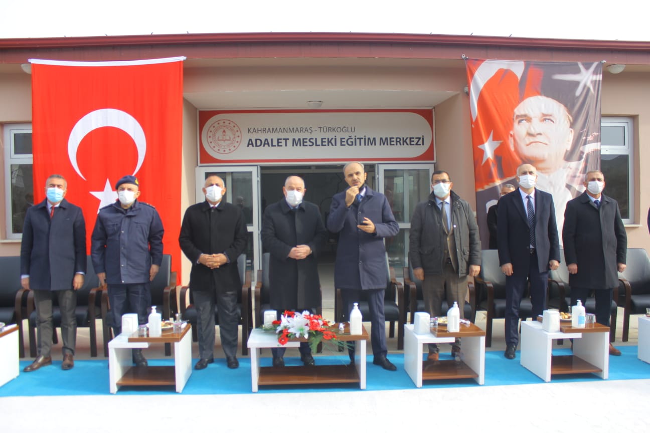 İş birliği protokolü kapsamında Türkoğlu Adalet Mesleki Eğitim Merkezi ile birlikte toplamda 17 Şehirde 18 Adalet Mesleki Eğitim Merkezi’nin açılış töreni, Millî Eğitim Bakanı Mahmut Özer ve Adalet Bakanı Abdülhamit Gül’ün İzmir’in Foça ilçesinde katıldıkları törenle eş zamanlı olarak yapıldı.Video konferans yöntemiyle diğer illerdeki Adalet Mesleki Eğitim Merkezleri ile birlikte gerçekleştirilen Türkoğlu Adalet Mesleki Eğitim Merkezi'nin açılış törenine Vali Ömer Faruk Coşkun, Kahramanmaraş Cumhuriyet Başsavcısı İlker Yazıcı, Vali Yardımcısı Vekili ve Türkoğlu Kaymakamı Mahmut Hersanlıoğlu, İl Millî Eğitim Müdürü Yusuf Kahraman, Türkoğlu Cezaevi Jandarma Tabur Komutanı Yarbay Serkan Özel katıldı.Açılıştan önce konuşan Kahramanmaraş Cumhuriyet Başsavcısı İlker Yazıcı, 2020 yılında hayata geçirilen protokol kapsamında yaklaşık 2 ay gibi bir sürede Türkoğlu Adalet Mesleki Eğitim Merkezi'nin yapımının tamamlandığını belirterek, “İl Millî Eğitim Müdürlüğümüzün de katkılarıyla faaliyete geçirdiğimiz binamız, 7 derslikte yaklaşık 90 hükümlümüzün eğitim alabileceği bir kapasiteye sahip. Covid-19 izinleri nedeniyle 148 hükümlümüzden ancak 20’si şu anda eğitim alıyor. Hükümlülerimiz döndüklerinde bu sayının çok daha fazla olacağına inanıyorum. Bu meslekî eğitim projesini hayata geçiren değerli bakanlarımıza, tüm katılımcılara ve tüm kurumlarımıza katkılarından dolayı şükranlarımı ifade etmek isterim. Hayırlı uğurlu olmasını temenni ediyorum.” diye konuştu.Konuşmanın ardından Türkoğlu Adalet Mesleki Eğitim Merkezi’nin açılış kurdelası kesildi.Açılışın ardından Valimiz Ömer Faruk Coşkun, Cumhuriyet Başsavcısı İlker Yazıcı, İl Millî Eğitim Müdürü Yusuf Kahraman ve beraberlerindeki heyet, Türkoğlu Adalet Mesleki Eğitim Merkezi’ni ziyarette bulundu. Sonrasında ise Ceza İnfaz Kurumu Semt Polikliniği ve Türkoğlu Cezaevi Jandarma Tabur Komutanlığı’na ziyaretler gerçekleştirildi.