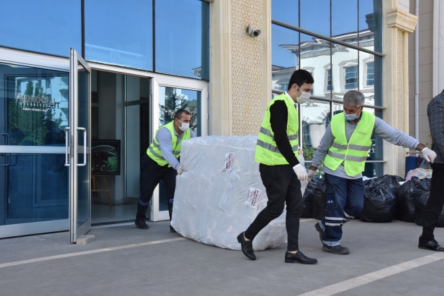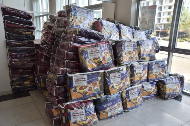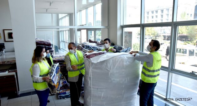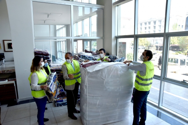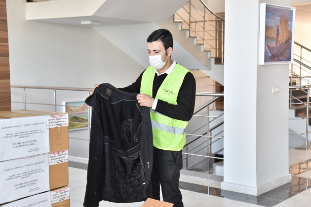 Kahramanmaraş'ın Türkoğlu Belediyesince düzenlenen "İzmir üşürse Türkiye üşür " kampanyası kapsamında deprem bölgesine gönderilmek üzere 5 bin parçadan oluşan battaniye, kışlık kıyafet, yeni doğan ve hijyen seti hazırlandı.